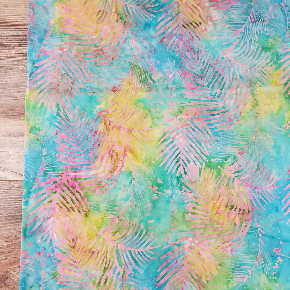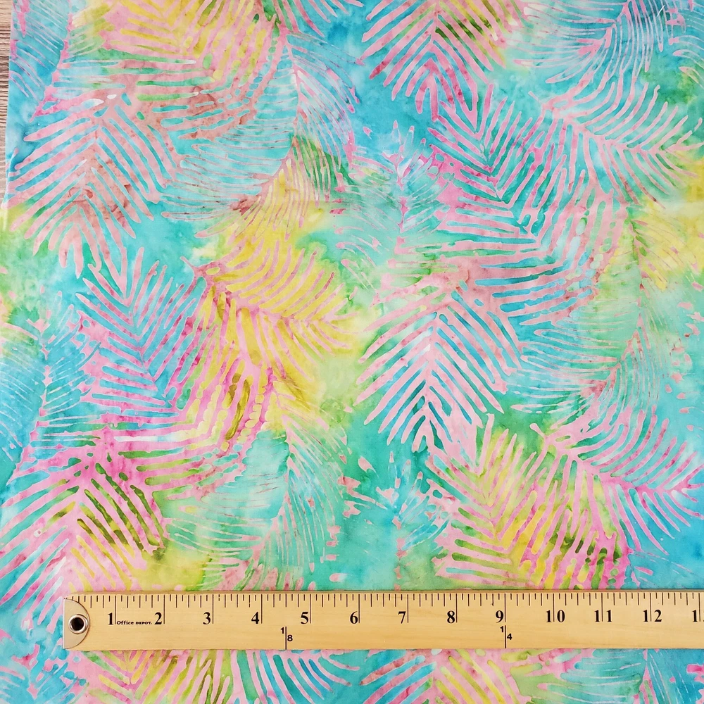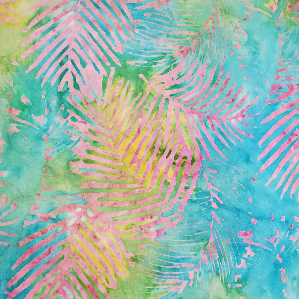 Aqua Teal Pink Batik Palm Fronds Print Quilting Fabric 48" ((1 yd 12") Cotton Single piece measuring 48" or (1 yard and 12 inches) Fabric has been washed without detergent and dried and cut. It is unused and in excellent condition. Selling off my large collection of fabric. All fabrics were purchased new and prewashed upon receiving FABRIC has been pre-washed Width is standard for the print 40" or wider Contents: 100% Cotton Care: Machine Wash/Tumble Dry Low