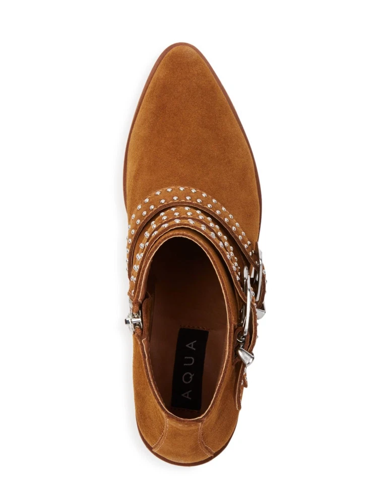 Toe Shape: Almond Toe Calf Width: Regular Color: Brown Type: Boot Upper Material: Leather Shoe Width: M US Shoe Size: 5.5 Occasion: Casual Lining Material: Polyurethane Closure: Zip Character: Boots, Blue UPC: 0824095234856 Heel Style: Block Accents: Studded Shoe Shaft Style: Ankle Features: Buckle Season: Fall, Winter, Summer, Spring gtin13: 0824095234856 GTIN: 0824095234856 Insole Material: Polyurethane Style: Bootie Brand: Aqua