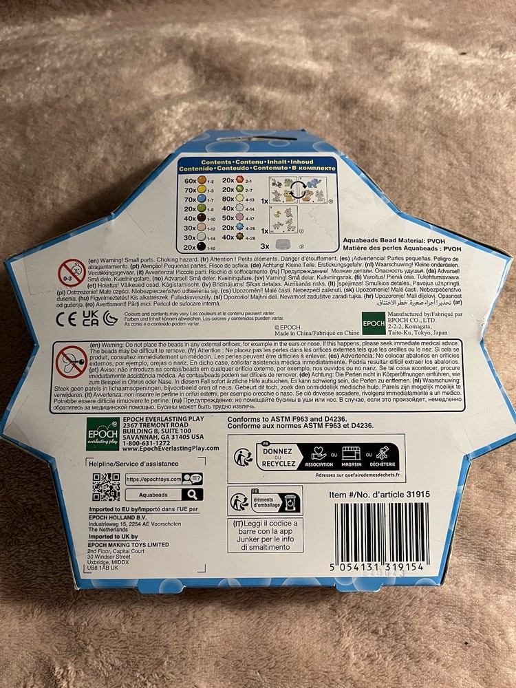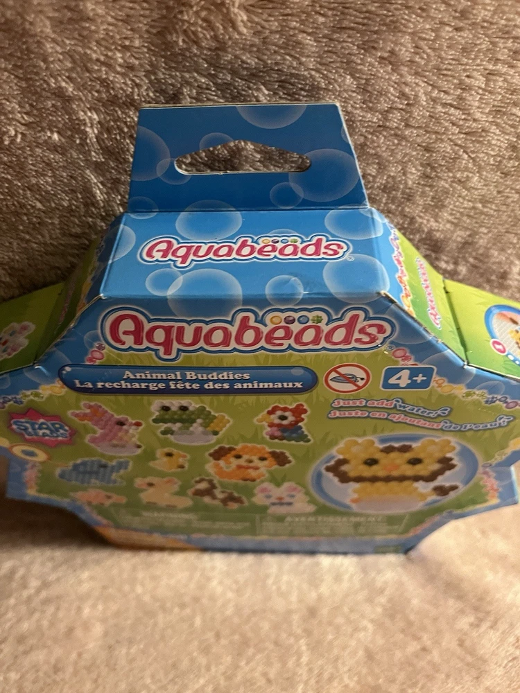 Aquabeads Animal Buddies Theme Refill from the company Epoch. This is brand new and unopened. Make sure to review all photos and zoom in to see exact condition. Photo 3 shows exactly what comes with this refill kit. Please note that this is a refill kit for aquabeads. So this kit doesn’t contain a tray for the beads or the tool to place them. It’s just the beads, design cards, and a few stands to place your creations in after they are done. Comes from a smoke free home.
