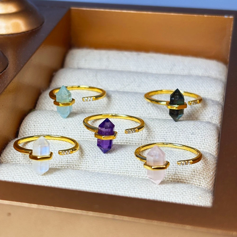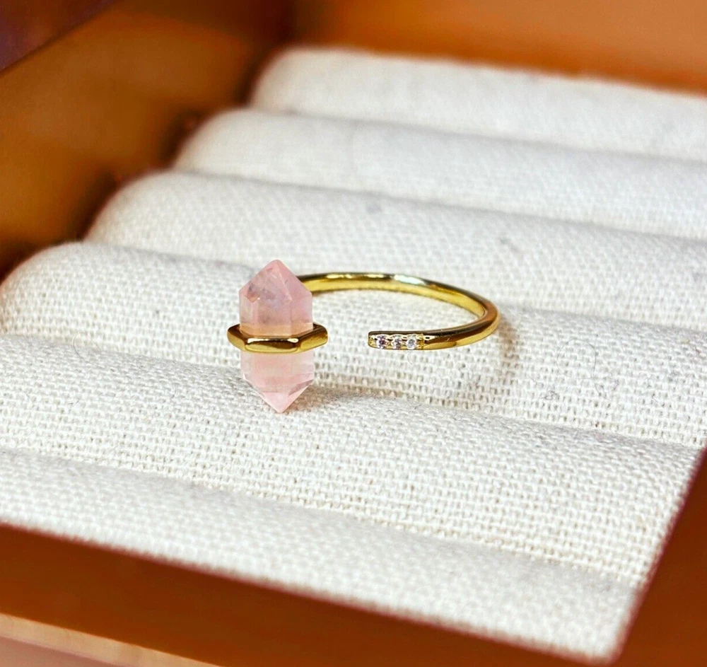 Now Gift-Ready in Premium Packaging! Every order now comes with our new elevated packaging—perfect for gifting right out of the box. Whether it’s for a loved one or a treat for yourself, your jewelry will arrive beautifully presented and ready to wow. 🌊 Embrace Calm & Clarity – A Stunning Aquamarine Crystal Ring! 🚚 FAST & FREE SHIPPING! 📦 Ships within 1 business day – Ready to gift! Find serenity, courage, and clarity with this real Aquamarine crystal point ring, crafted with a beautiful hexagonal crystal wand set in high-quality gold-plated brass. Known as the stone of tranquility, Aquamarine is deeply connected to the ocean’s calming energy, making this ring the perfect symbol of peace and inner strength. This adjustable ring (fits sizes 5-11) is effortlessly elegant, ideal for everyday wear, stacking, or gifting to someone special. 💙 FEATURING AQUAMARINE – THE STONE OF PEACE & COURAGE! ✓ Calms the Mind & Reduces Stress – A perfect anxiety ring for everyday wear ✓ Encourages Strength & Confidence – Enhances communication and self-expression ✓ March Birthstone Jewelry – A meaningful gift for those born under Pisces & Aries 💎 EXPLORE OTHER GEMSTONE OPTIONS! ✨ Amethyst – Protection, tranquility & spiritual growth ✨ Rose Quartz – Love, harmony & emotional healing ✨ Moonstone – Intuition, balance & new beginnings ✨ Labradorite – Transformation, creativity & inner strength ✨ PRODUCT DETAILS ✨ ✔️ Material: High-quality gold-plated brass for durability ✔️ Gemstone: Genuine hexagonal crystal point (real Aquamarine) ✔️ Ring Size: Fully adjustable – fits sizes 5-11 ✔️ Style: Minimalist, boho chic, and effortlessly elegant 💎 WHY YOU’LL LOVE THIS RING 💎 ✔️ Real Crystal Energy: Carry the power of Aquamarine for calm & confidence ✔️ Dainty & Lightweight: Comfortable for everyday wear ✔️ Perfect for Stacking: Pairs beautifully with other rings ✔️ Adjustable Fit: A one-size-fits-all design makes it the perfect gift 🎁 A MEANINGFUL GIFT FOR: 🎀 Crystal & Healing Energy Lovers – A wearable source of positivity 🎀 March Birthdays & Astrology Fans – A perfect Pisces & Aries birthstone ring 🎀 Boho Jewelry Enthusiasts – A must-have statement piece 🎀 Mindfulness & Meditation Seekers – A touch of calm energy in jewelry form ✨ CARE INSTRUCTIONS ✨ ✔️ Store in a dry jewelry box when not in use ✔️ Avoid contact with water, perfumes, and chemicals ✔️ Clean gently with a soft jewelry cloth to maintain shine 🚚 FAST & FREE SHIPPING! 📦 Ships within 1 business day – Ready to gift! 🌊 Let the soothing energy of Aquamarine bring balance and clarity into your life! Whether you're seeking a calming crystal ring, a March birthstone piece, or a meaningful gift, this adjustable gold crystal point ring is a timeless treasure. ✨💎