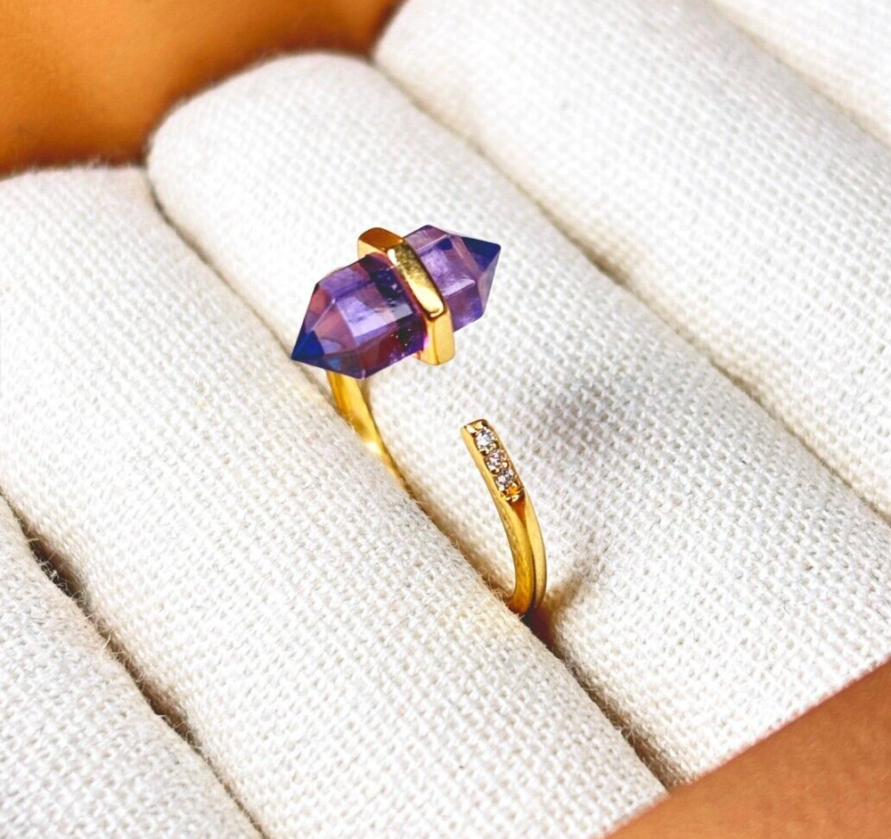 Amethyst Crystal Point Ring – Hexagonal Wand – Real Quartz – Birthstone Jewelry