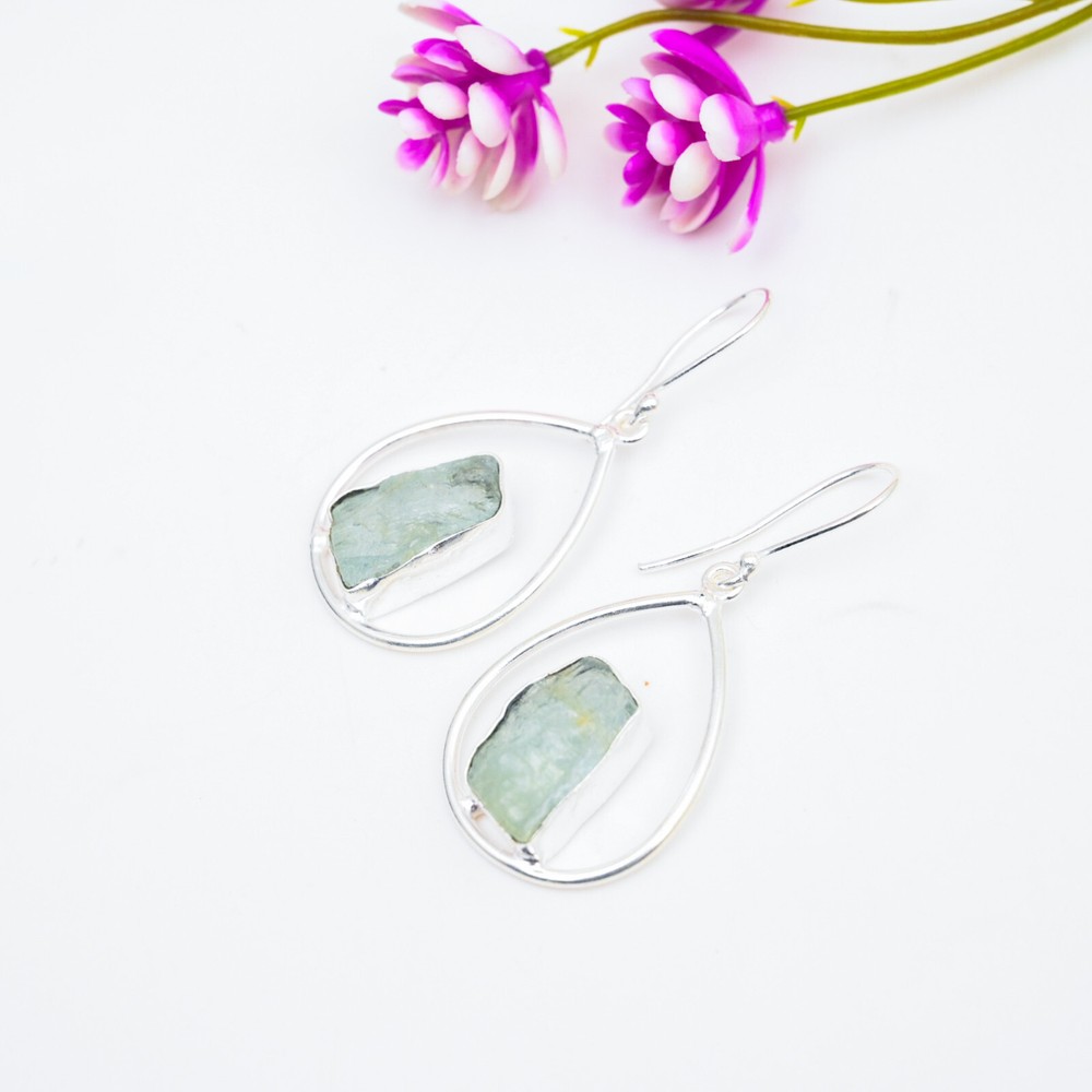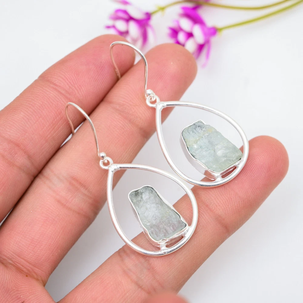 Aquamarine Gemstone Earrings in 925 Sterling Silver Handmade Jewelry Gift