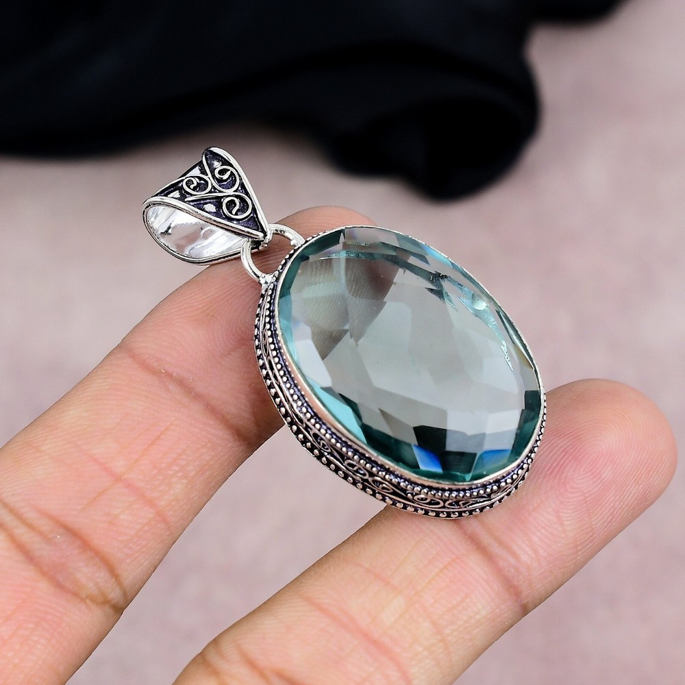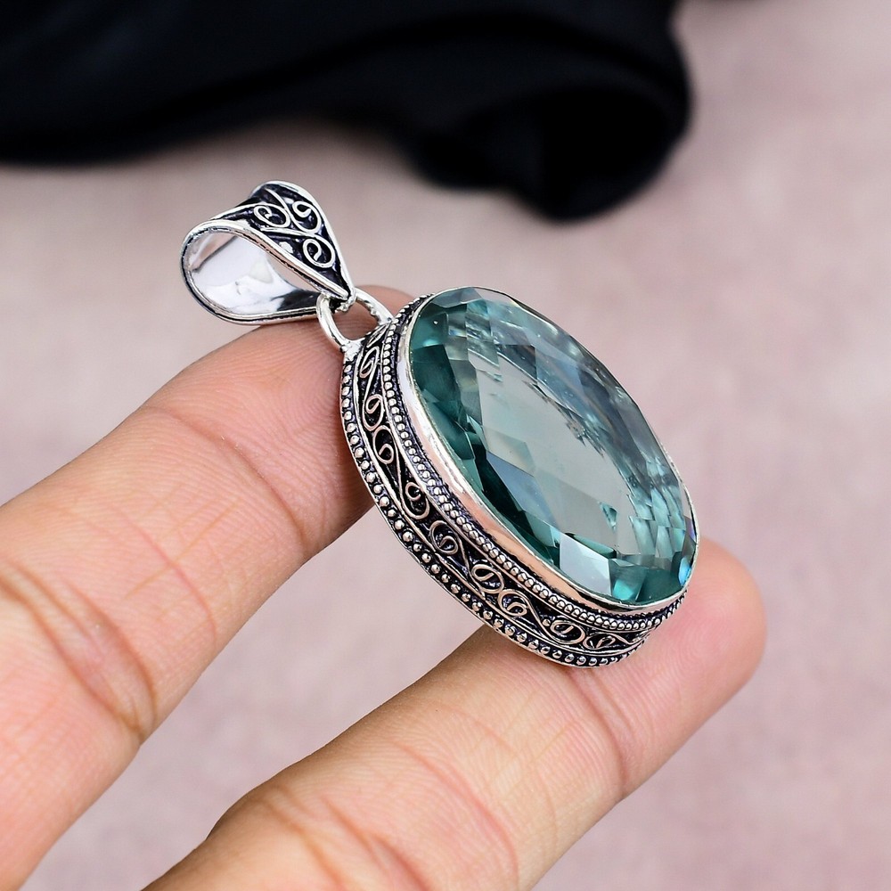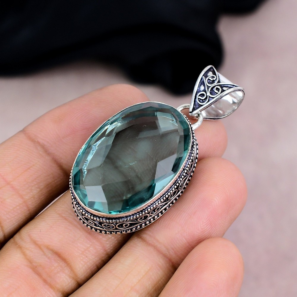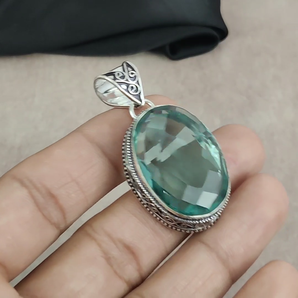 Features:HandmadeCountry/Region of Manufacture:IndiaTotal Carat Weight:10 carat and aboveColored Diamond Intensity:N/AMain Stone:AquamarinePendant/Locket Type:Same As PictureNumber of Diamonds:N/AMain Stone Color:BlueTheme:Beauty, Bohemian, Ethnic, Halloween, Love, NatureMetal:Sterling SilverMaterial:GemstoneStyle:PendantOccasion:Anniversary, Birthday, Christening, Christmas, Engagement, Father's Day, Graduation, Mother's Day, Valentine's Day, WeddingMetal Purity:925Brand:HandmadeDiamond Color Grade:N/AMain Stone Shape:OvalBase Metal:Sterling SilverType:PendantPendant Shape:Same As PictureCut Grade:N/ASecondary Stone:N/ACollection:HandmadeMain Stone Creation:Lab-CreatedColor:SilverNumber of Gemstones:1Diamond Clarity Grade:N/AClosure:Same As PictureChain Type:N/ANecklace Length:5"Certification:N/ASetting Style:BezelMain Stone Treatment:Not EnhancedCountry of Origin:India