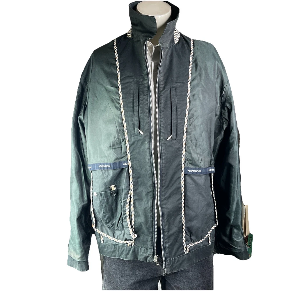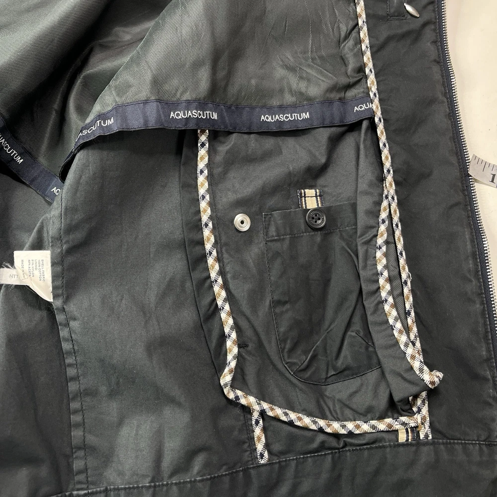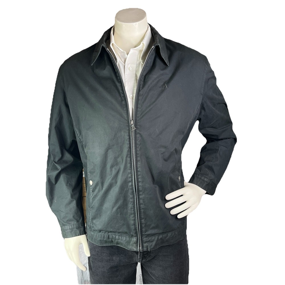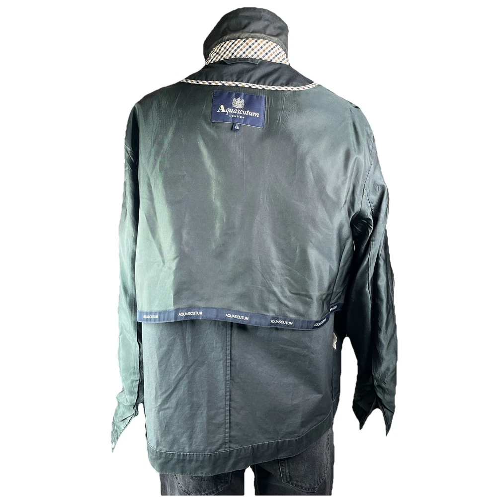 The Aquascutum London Harrington Jacket for men is a classic sport coat in black, featuring a zip-up closure and made of cotton. With a classic fit and size L, this jacket is a stylish and timeless piece perfect for everyday wear. The iconic brand, Aquascutum, ensures quality and sophistication, making this jacket a versatile addition to any man's wardrobe.