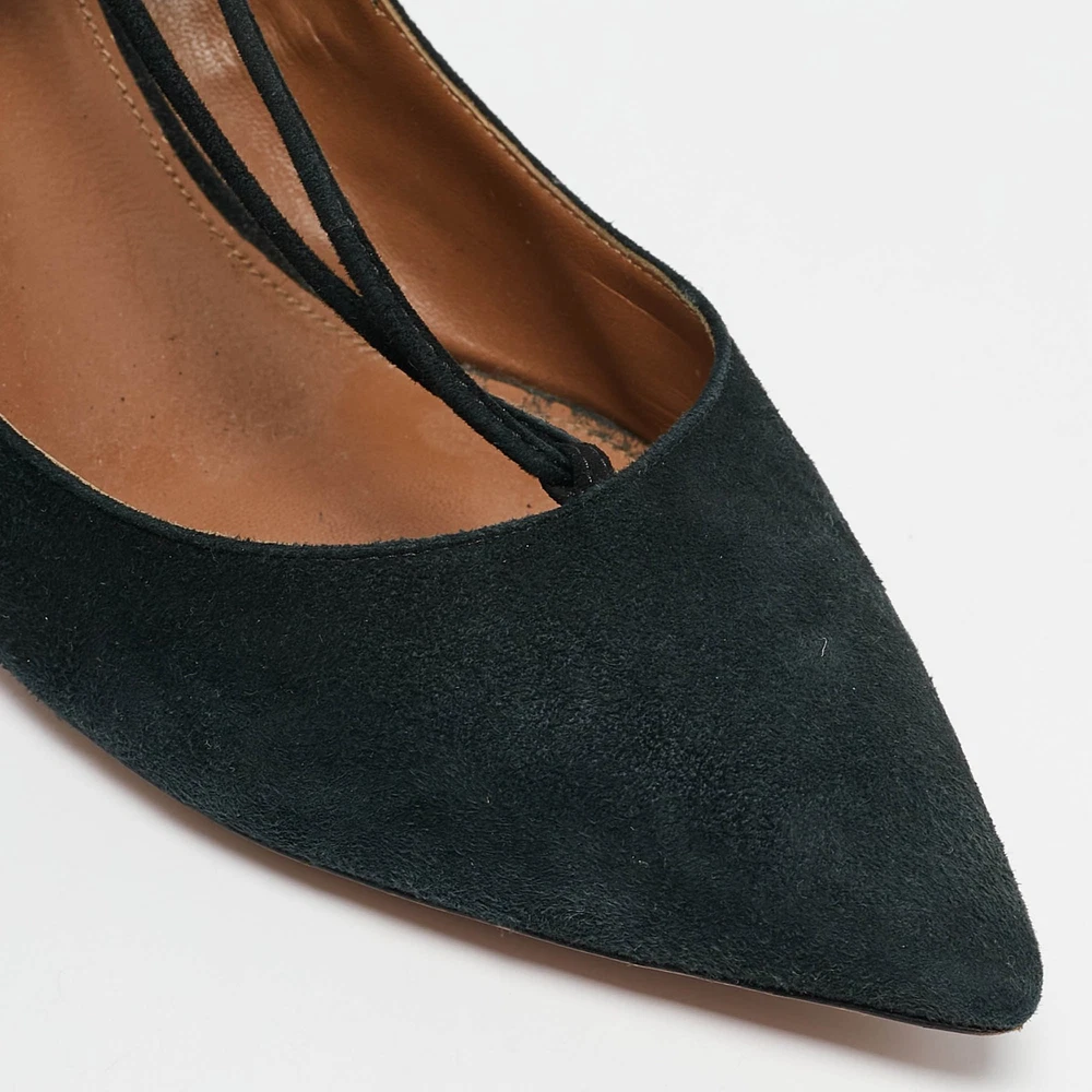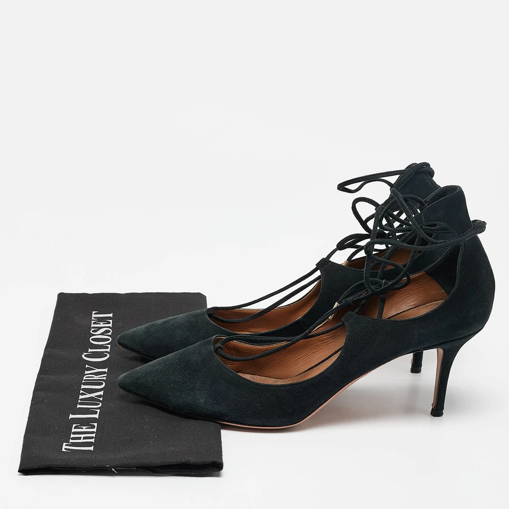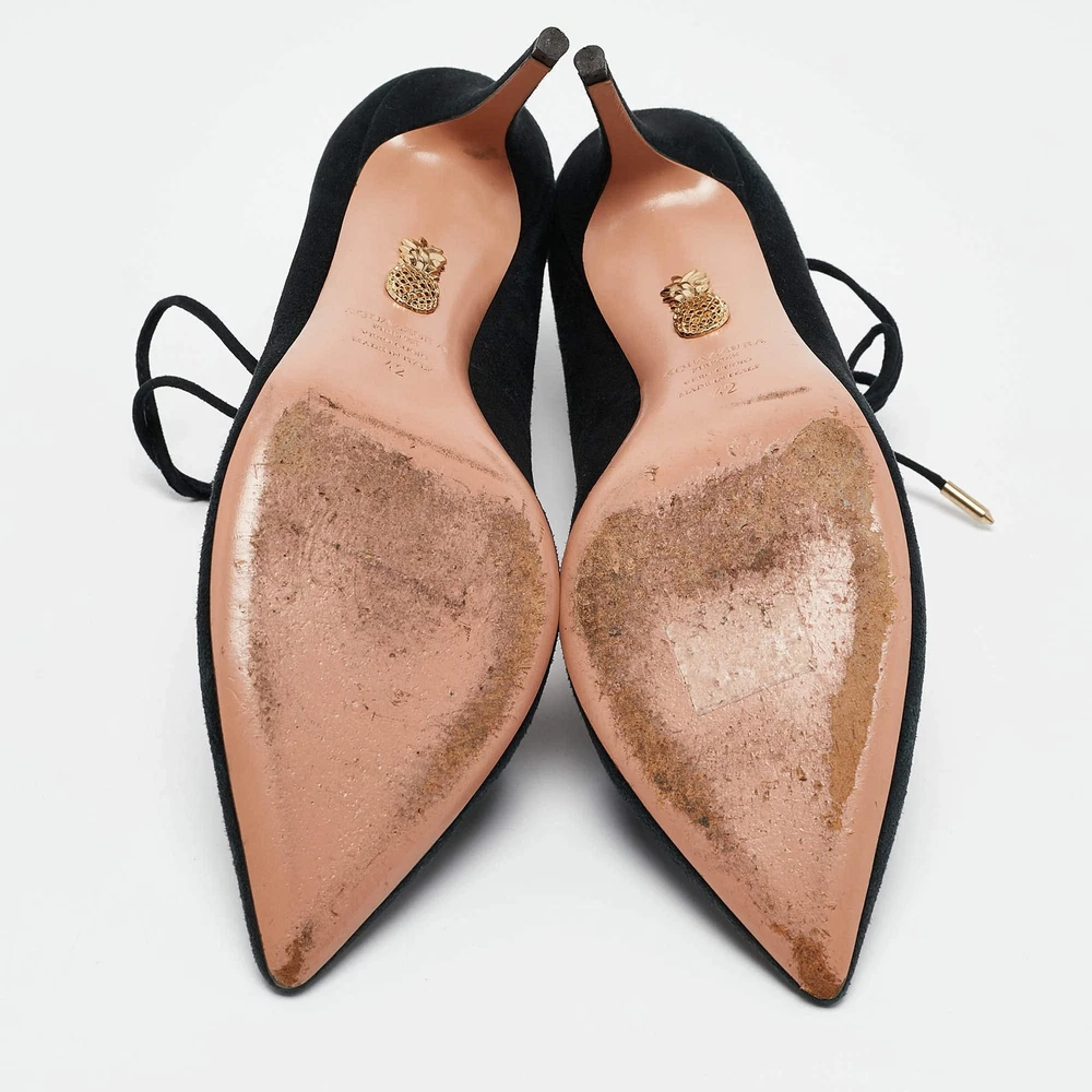 Aquazzura Black Suede Pointed Toe Ankle Wrap Pumps Size 42