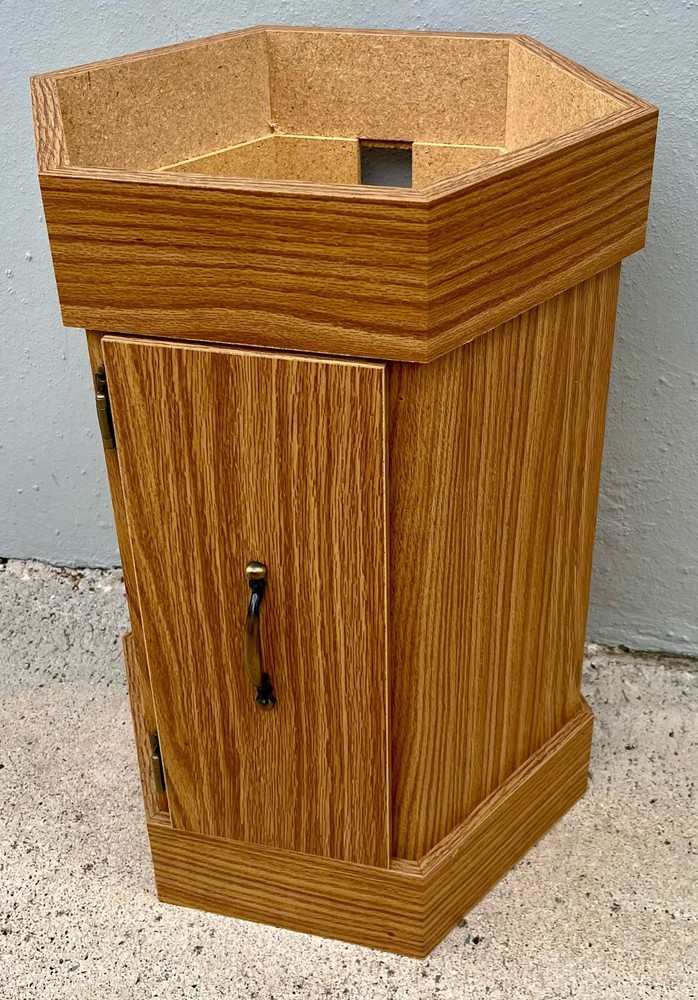 Stand for Aqueon / All-Glass Aquarium 20 gal Hexagonal Fish Tank - Oak The product is a sturdy oak stand designed for a 20-gallon hexagonal Aqueon or All-Glass aquarium fish tank. The stand is made of plywood/particle board and is suitable for all water types. The stand provides a stable and stylish base for showcasing the unique shape of the aquarium while also offering practical storage space for fish supplies or decorations. Perfect for adding a touch of elegance to any room while securely supporting the aquarium. This is old, new stock. Very difficult to find, as it is discontinued. Once these are sold, they will be gone forever. Don't delay! * PLEASE NOTE, THIS STAND ONLY FITS AQUEON / ALL-GLASS 20 HEX AQUARIUMS. **FISH TANK AND HOOD NOT INCLUDED, THEY ARE FOR REFERENCE PURPOSES ONLY. LISTING IS FOR THE STAND ONLY. ***THIS LISTING IS FOR LOCAL PICK UP IN PONCE, PUERTO RICO ONLY. ****WILL NOT FIT TOP FIN, PERFECTO OR ANY OTHER BRANDS BESIDES THE TWO IT IS LISTED FOR.