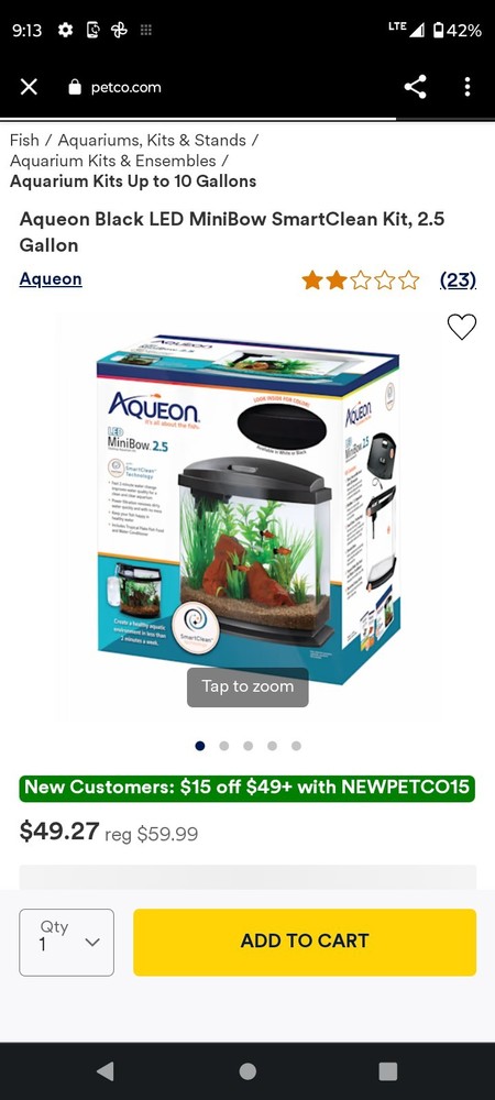 $ 63.36Modern 9-Gallon Aquarium Kit with LED Lighting & Built-In Filtration System