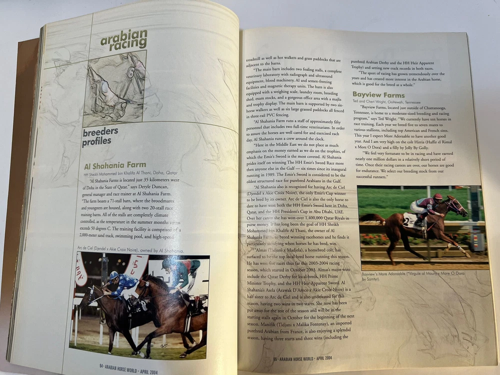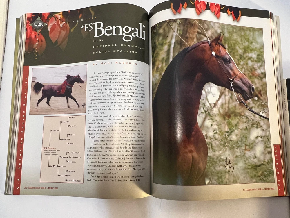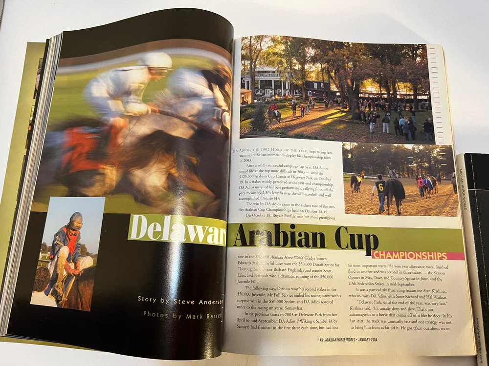 Arabian Horse World Magazines Jan '04, April '04 Minor scuffing and creasing on the covers, interiors look good. Please see photos BLS.