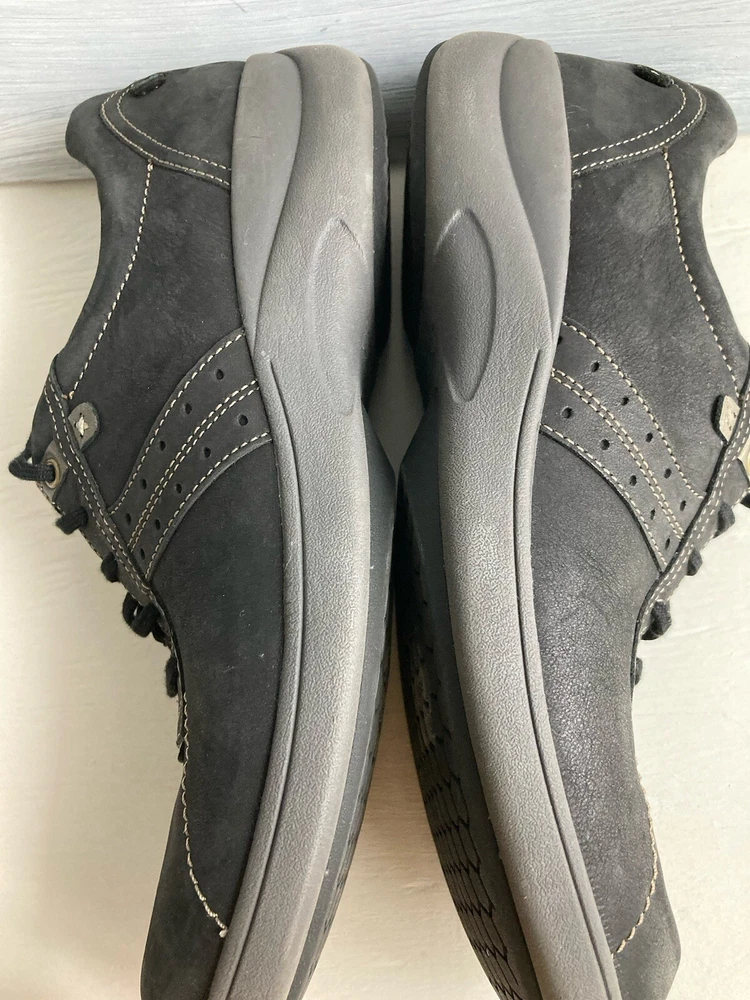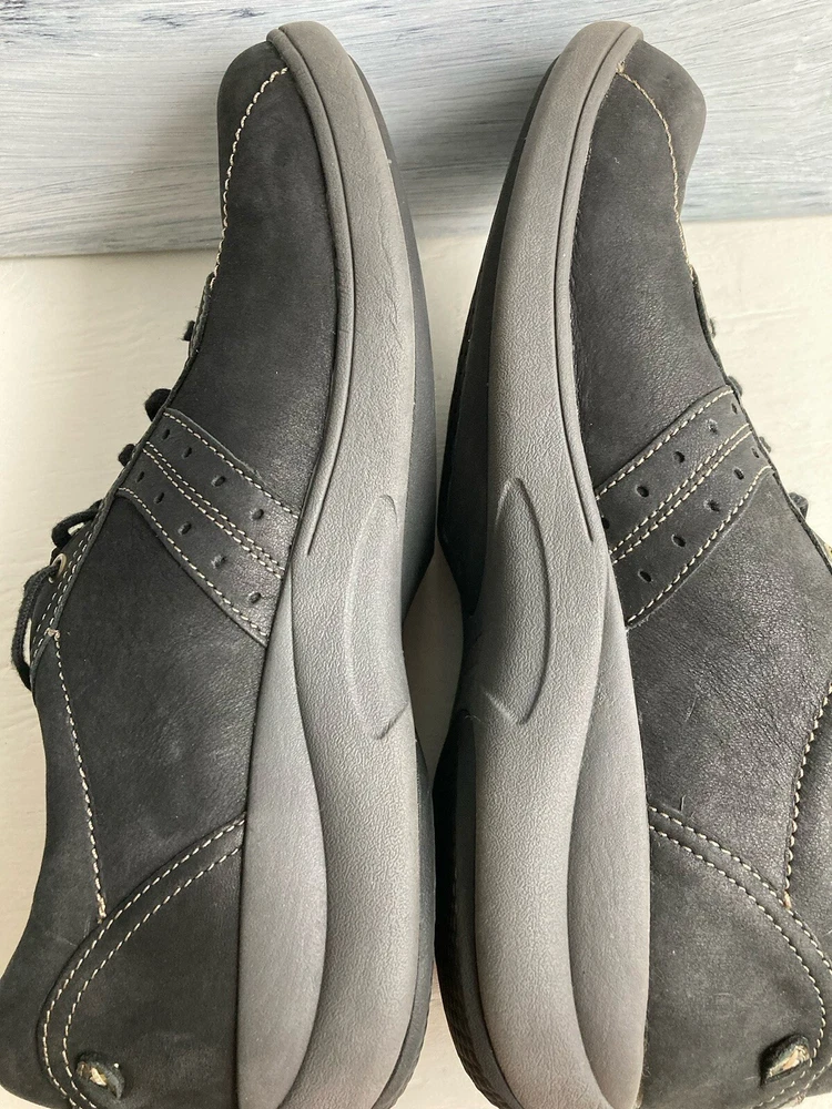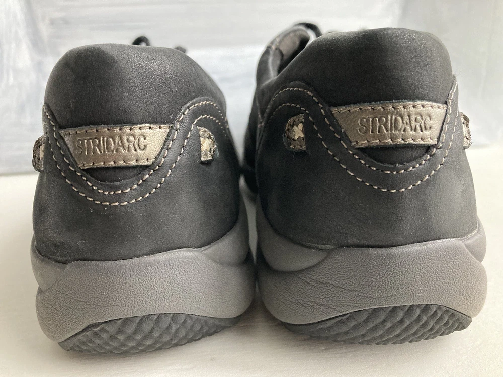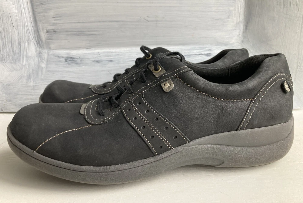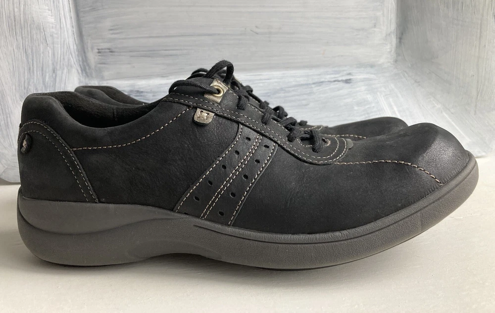 Elevate your footwear with these Aravon By New Balance women's sneakers in size 9AA. This shoe features a comfortable lace-up closure for a secure fit, Stridarc technology, comfortable foam insoles, as well as durable rubber outsoles. The low-top shoe shaft style is perfect for everyday use and the solid black color makes it a classic addition to any wardrobe. Crafted with leather upper material, these shoes offer a sturdy walking foundation that has both support and motion control, making them a suitable choice for all seasons. Perfect for travel, activewear, workwear, or casual occasions, these sneakers are a must-have for any woman looking for a stylish yet comfortable shoe. They are in great condition with no damage. FAST SHIPPING!!