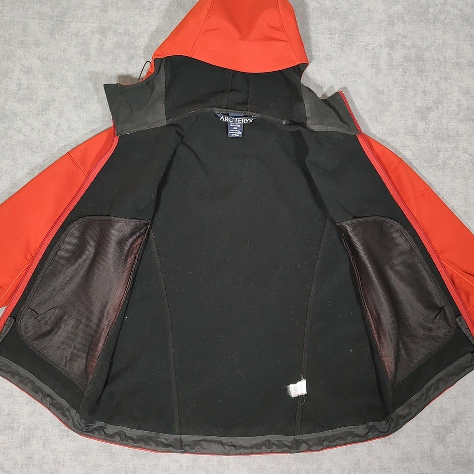 Burnt Orange Arc'Teryx Gamma MX Hoody gorpcore soft shell fleece lined jacket, mens size S. Its in good condition, has a few tiny light stains around the jacket Contents tag is unreadable, but this is an older Gamma model from the 2010's, made in China, no chest pocket, logo on the left sleeve Its been washed before listing Please reference photos before purchasing
