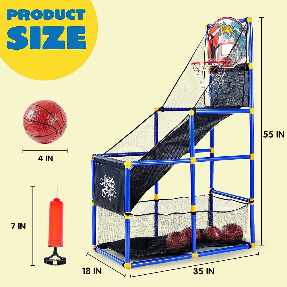 Arcade Basketball Game Set with 4 Balls and Hoop for Kids 3 to 12 Years Old Indo
