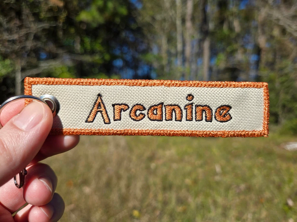 This is a Arcanine Jet Tag Keychain that I machine embroidered into waterproof canvas, it's perfect for accessorizing anything from your keyring to a lanyard or a backpack! This tag is made from waterproof canvas with a different design embroidered into the front and back. I also offer the option to have a custom name on the back of the Tag! The dimensions of this tag measure roughly 5x1in. If there is a certain character that you're interested in, please feel free to message me!