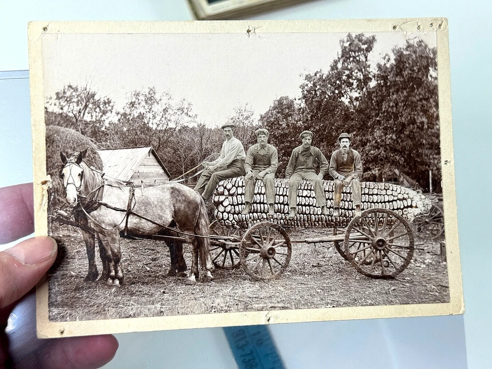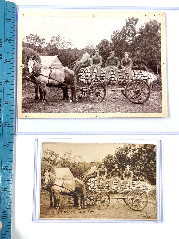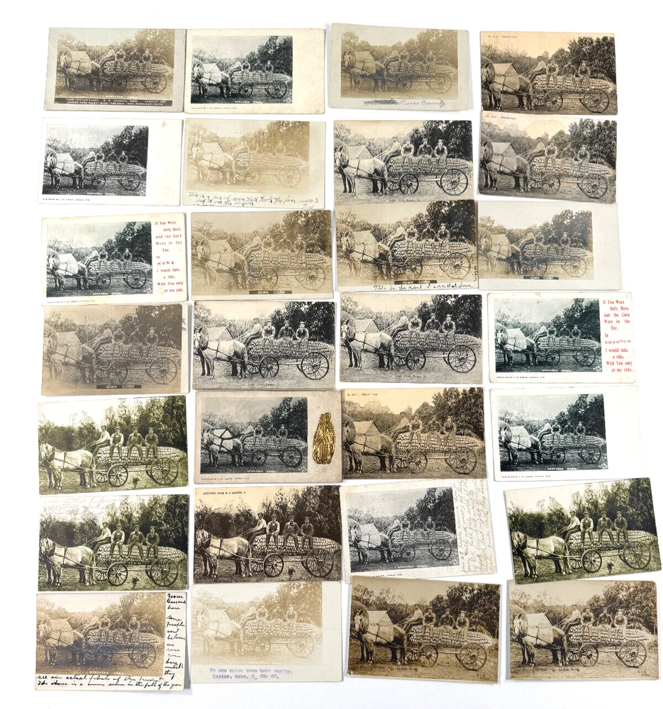 For sale today is this incredible archive of Nebraska photographer Archer King. King is mostly know for his exaggeration postcards. Archer is a legend in the postcard world for his extraordinary compositions and subjects! We are very lucky to have acquired a histoci collection from the estate of a lifelong collector...and friend who passed away last year. He had incredible taste and spent years tracking down incredible, rare items! This lot of no exception! Great lot which includes everything you see in the photos. This lot includes an ORIGINAL exaggeration mock up. You can see King's work in the photos. This is an original handmade exaggeration which was duplicated in his studio and used to make the classic Nebraska corn postcard. This lot also includes 28 versions of this image. INCREDIBLE. This also includes King's first test postcard. You can see by the markings the cards were used in the studio as they are marked by Roman numerals. These are Archers own marks as many of these items were originally purchased for his family members in the 70s and 80s. A terrific lot from a legendary photographer! STORE POLICIES Please look closely at the item photos they are the best indication of condition. Please ask questions BEFORE you purchase an item. All of our items are sold AS-IS. No returns please. All offers considered, first reasonable offer accepted! We reserve the right to adjust the mode of shipping. WE NEVER BREAK OUR LOTS. Thanks! We ship all items within 3 business days . Larger items may take longer. We have been buying and selling in Southwestern Kansas for almost 20 years! Thank you for your purchases and support of our small business!