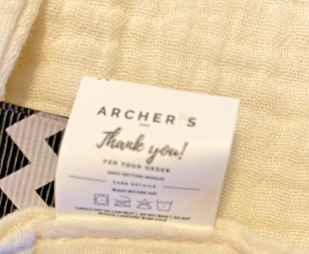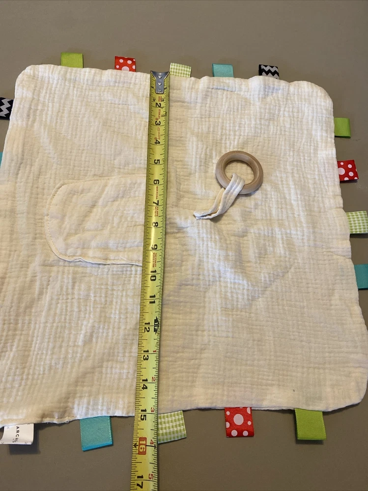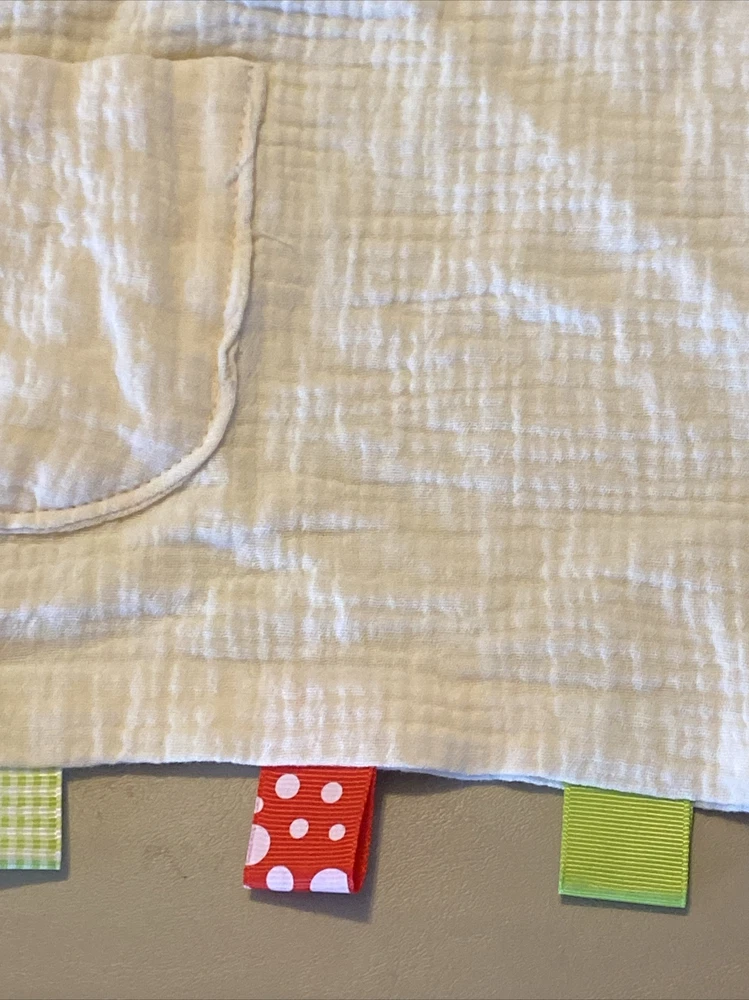 Archer's Off White Muslin Baby Lovey Blanket Loop Tags Pocket unisex