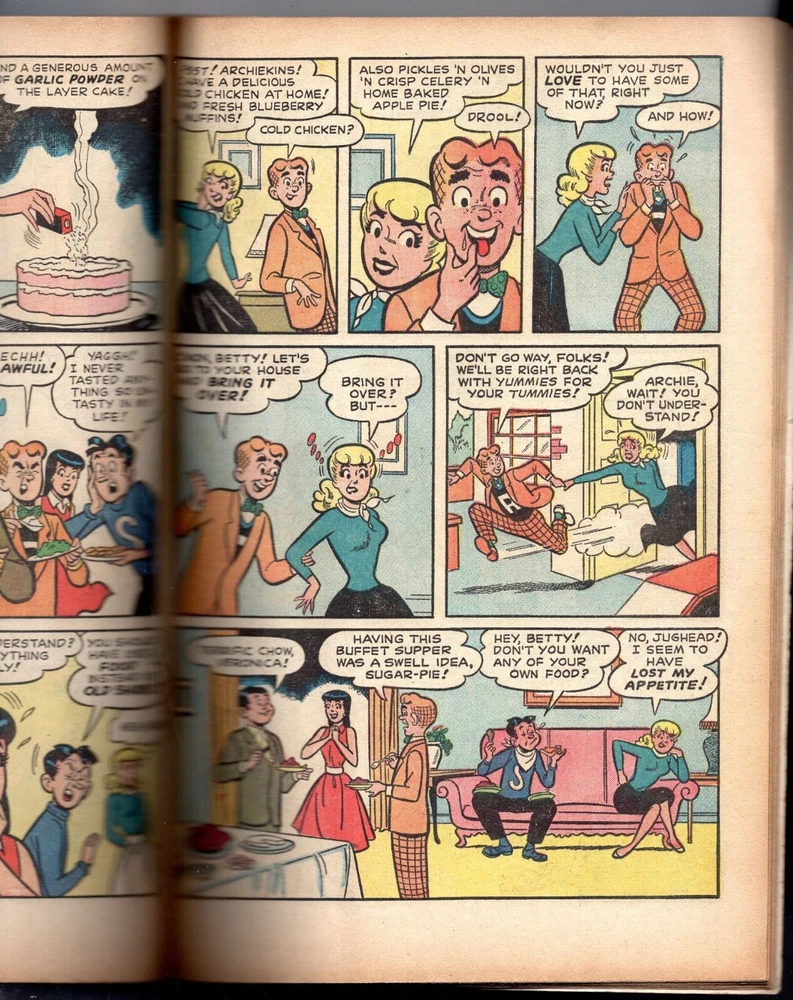 "Around the World with Archie," 25¢ cover, stories include "Rise and Shine," "Please Be Seated," "Mummy Knows Best," "Water Boy," "U.N. Antics," "By Hook or Cook," "And So To Bed," "Father Knows Least," "Washington Bound," "All Around the Town," "Flyin' High," and "All's Well That End!" • Archie Giant Series #29 • October, 1964 issue • Bagged and boarded, of course. Condition: Low grade. Mild wear on cover edges and pages. No missing pages, no cut-outs. Some tracing of the word "Archie" on the cover. Light pen mark at the top of an interior page. Writing on last page (some pencil math and some pen used to fill out a coupon.Spine solid. Pages cream-colored. Colors sharp. Free shipping. Professional packaging always, since 2003.