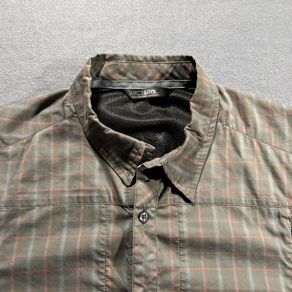 *Please review all photos closely before purchasing due to shirt having wear on size tag and having mild signs of use and wear from washing and being preowned to prevent return.* Explore the great outdoors in style with the Arc'teryx Brohm Shirt. Designed for the modern adventurer, this men's large shirt features a classic brown and red plaid pattern that easily transitions from a day on the trail to a casual evening out. Its short sleeves, lightweight fabric blend of polyester and cotton, and breathable down fabric provide comfort and practicality for any casual or travel occasion. Equipped with a spread collar, button-down closure, and handy pockets, this shirt is machine washable for easy care and is perfect for a variety of seasons - from the warmth of summer to the cool of fall. Experience the perfect combination of functionality and timeless style with this versatile piece from a brand renowned for their quality and durability. Hike Camping Climbing Pitch Travel Business Work Gorp GorpCore Repel Through Hiking Outside Outdoors Trekking Outdoor Apparel Original Iconic Classic Trusted Premium Lightweight Packable Breathable Backpacking