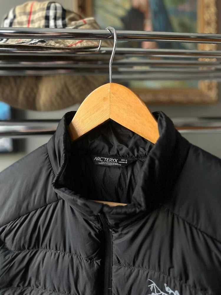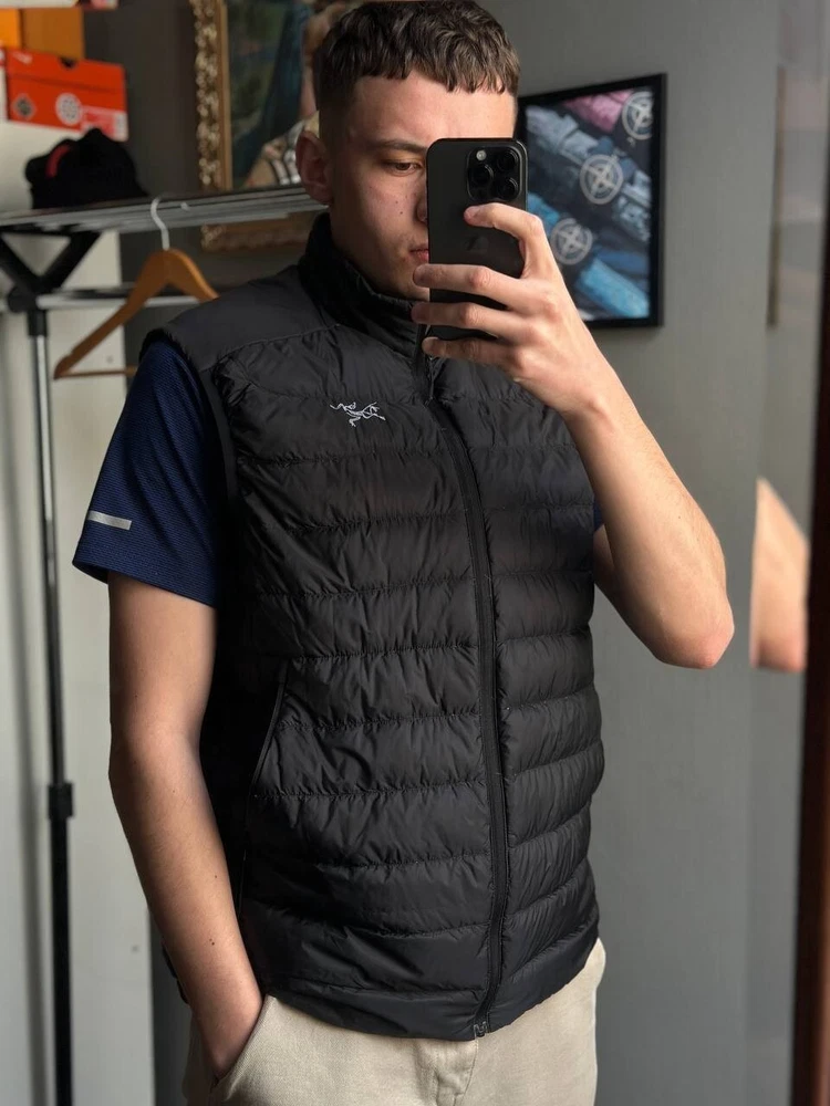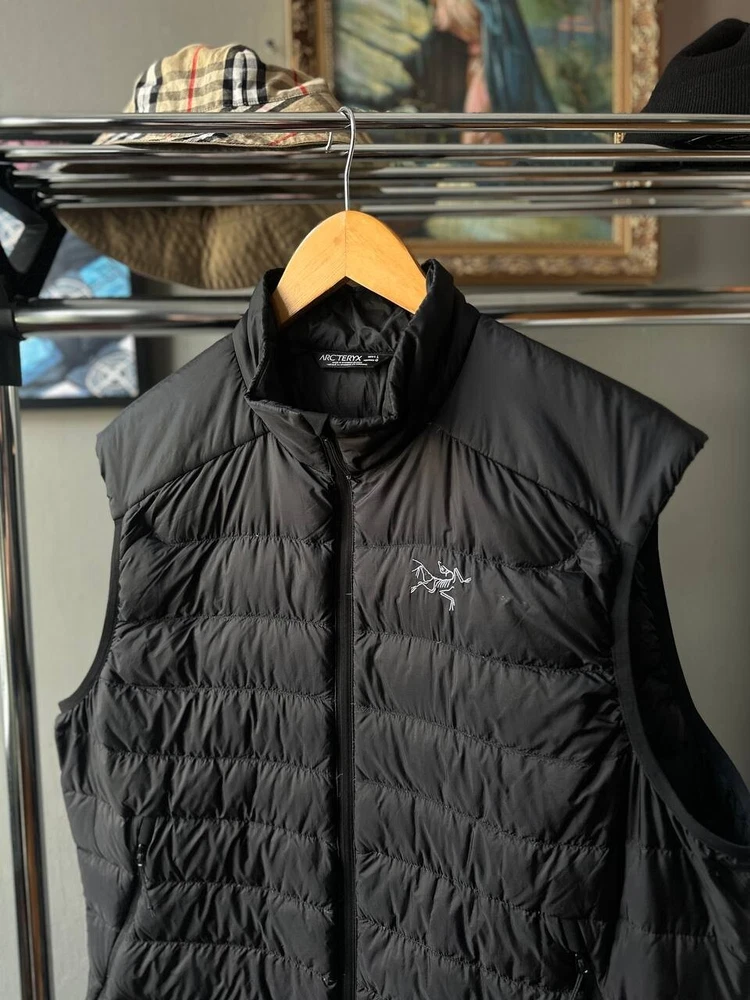 This Arcteryx Cerium Down Puffer Vest is a rare find for those who love high-quality outdoor clothing. The vest is made of durable nylon material and features a full zip closure, making it perfect for all seasons. It is wind-resistant and lightweight, making it ideal for activities such as cycling, hiking, and camping. The vest is also heated, providing warmth during cold weather, and has padded insulation for added comfort. The black color and check pattern add a stylish touch to the design, while the Arc'teryx logo accents the vest's quality. This vest is perfect for those who want to stay warm and comfortable while enjoying the outdoors.