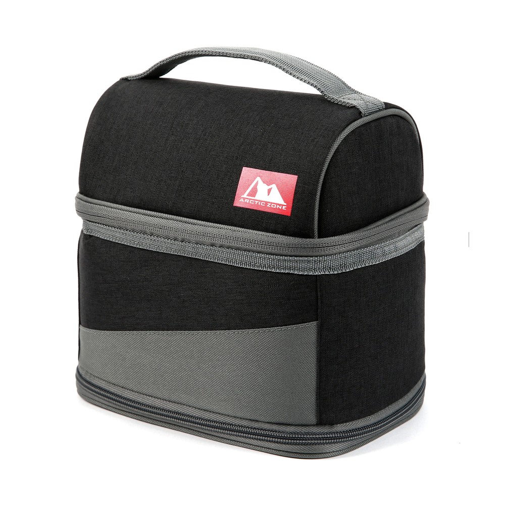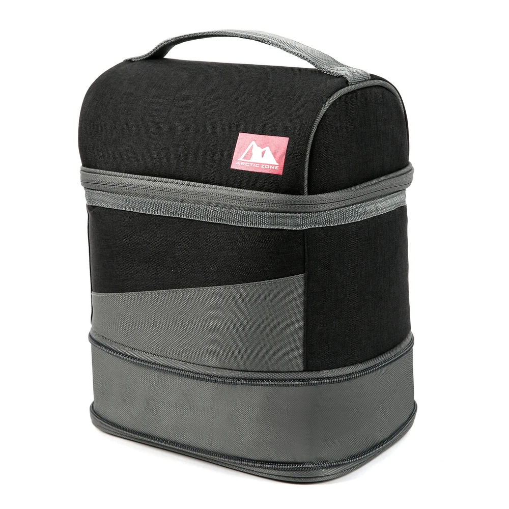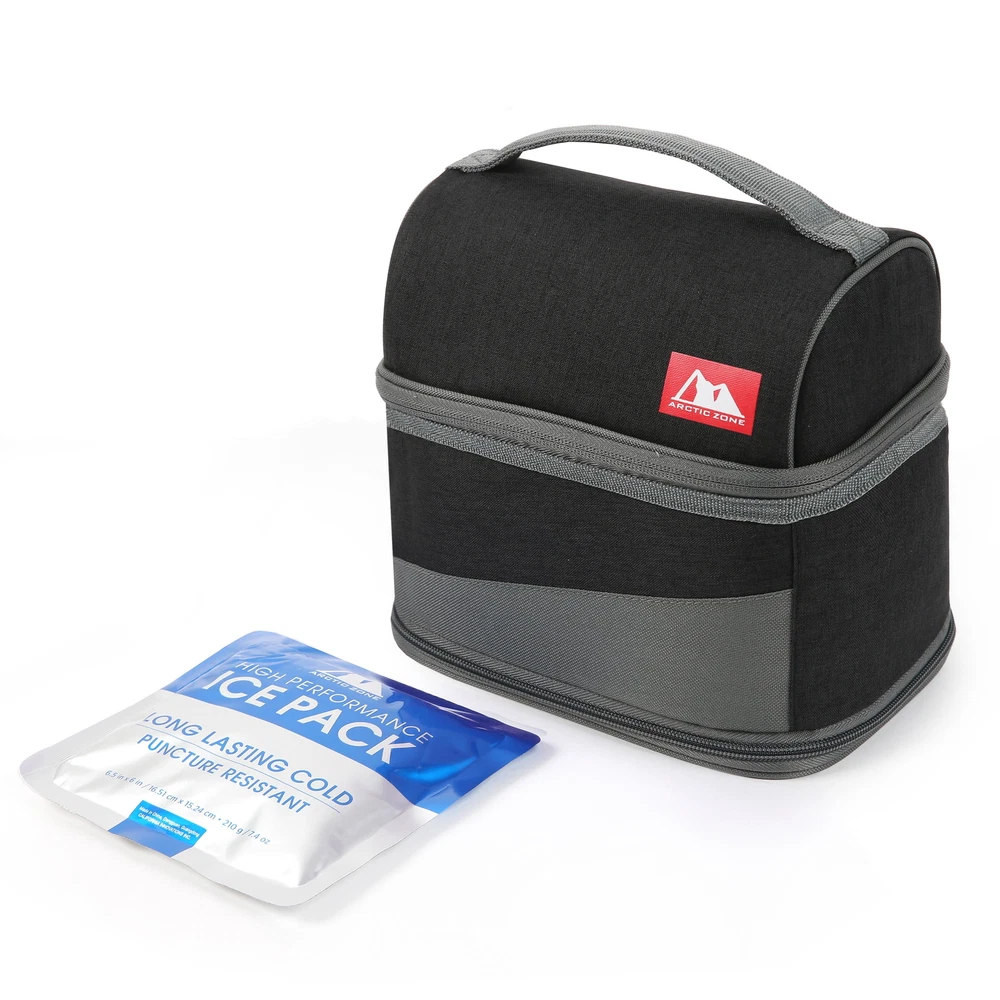 Arctic Zone Expandable Insulated Lunch Box with Ice Pack in Black and Gray