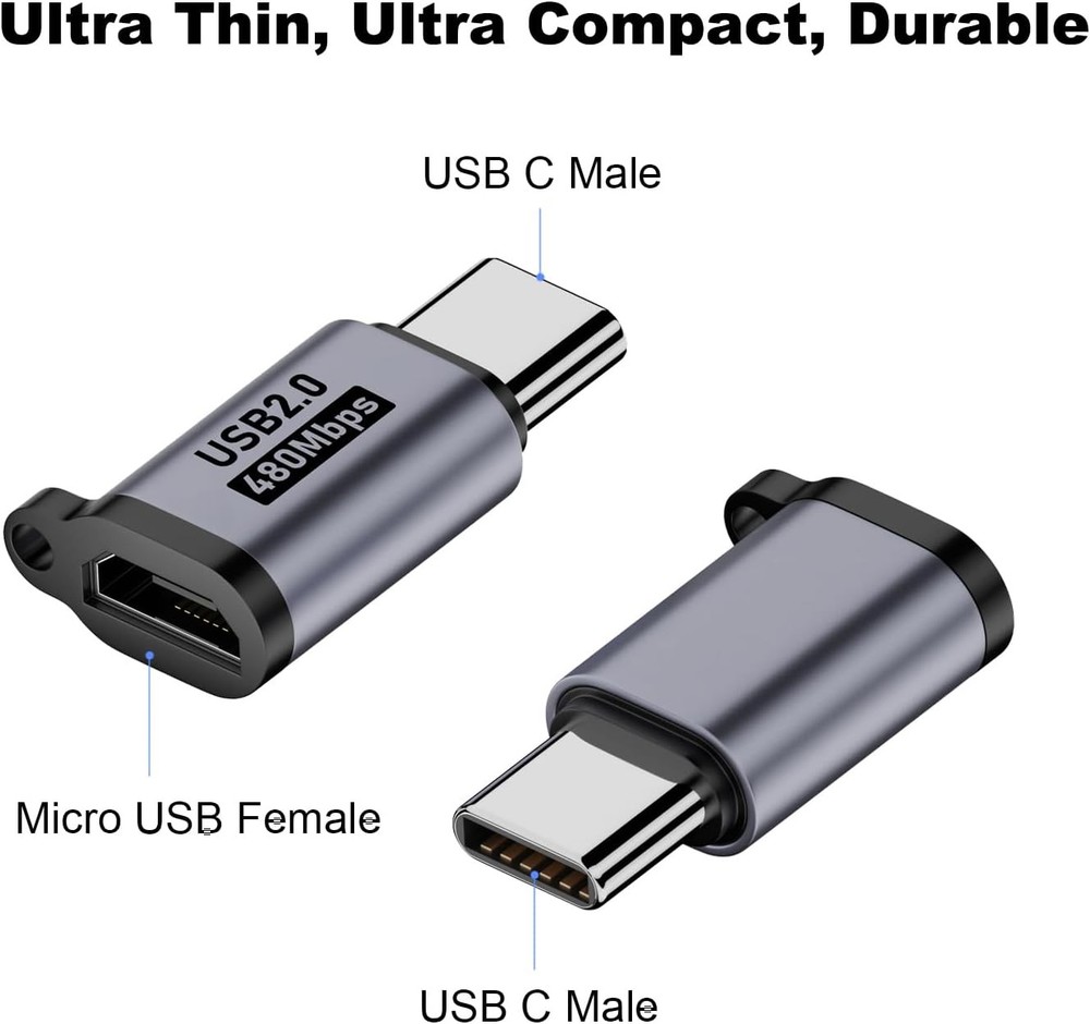 AreMe Micro USB 2.0 to C Adapter (4 Pack), Female Grey Product Details Compatible Devices: Galaxy S10/S9/S8/S20/S21/S22, Note 8/9/10/20, Google Pixel 6/5/4/3/2 XL, LG V40/35/30/20, G7/6/5 and more devices with USB-C port Galaxy S10/S9/S8/S20/S21/S22, Note 8/9/10/20, Google Pixel 6/5/4/3/2 XL, LG V40/35/30/20, G7/6/5 and more devices with USB-C portGalaxy S10/S9/S8/S20/S21/S22, Note 8/9/10/20, Google Pixel 6/5/4/3/2 XL, LG V40/35/30/20, G7/6/5 and more devices with USB-C port See more Specific Uses For Product: Cell Phone Connector Type: USB Type C, Micro USB Color: Grey Brand: AreMe 【Micro USB to USB C Adapter】With this adapter, you can connect the micro usb cable to the USB-C device for charging and data transfer. 【Charging and Data Transfer】The micro USB 2.0 adapter supports up to 2.4A fast charging, and supports 480Mbps(40-60MB/S) data transfer speed. 【Small and portable】Ultra thin size, ultra compact design, durable aluminum shell, fine appearance details and strict quality inspection standards. 【Compatibility】Compatible with Galaxy S10/S9/S8/S20/S21/S22, Note 8/9/10/20, Google Pixel 6/5/4/3/2 XL, LG V40/35/30/20, G7/6/5 and more devices with USB-C port. 【What you'll get】4 Pack micro USB female to USB C male adapter.