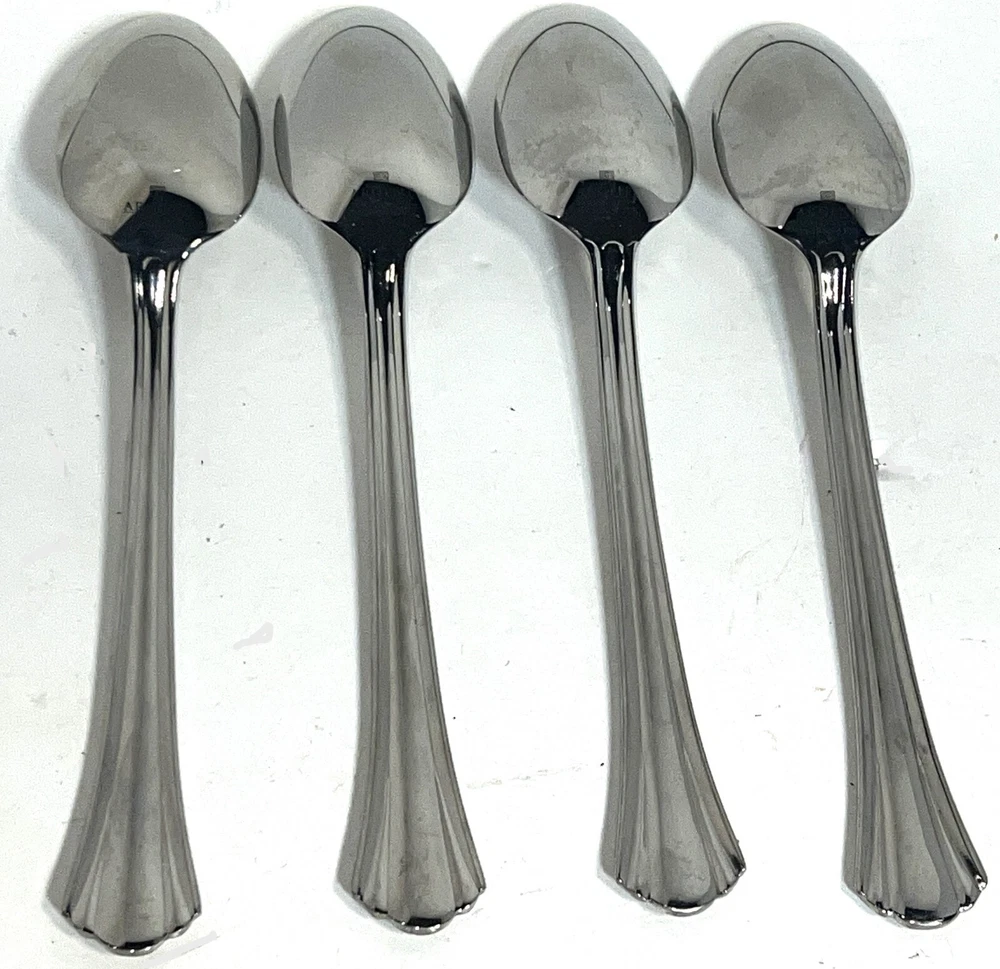 Lot of 4 Argent Orfevres GERTRUDE Hampton Silversmith Stainless Steel 8" Long Dinner/Soup/ Tablespoon/Table Spoons.