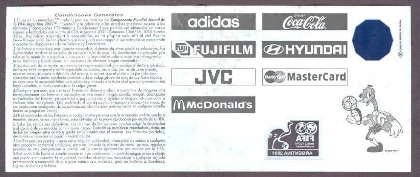 If you can't bid don't use Netscape or Firefox, try using Explorer. FILATELIAMK Buenos Aires, Argentina Argentina Sub 20 Soccer World Cup 2001 Dated On June 20 Of 20001, Amalfitani Stadium, Chile vs USA USED, It Is Bend In Half . For A Great Collector. Payment is due within 7 days of the auction's close. Only by Paypal. WE SHIP WORLDWIDE If You Have any Question for any item, please do it from Monday to Friday, I will not answer questions on Saturdays and Sundays. For all questions please send the item number. SHIPPING COSTS WORLDWIDE: Up to 2 postcards = 8 US$ - More than 2 postcards please ask 1 Photo = 10 US$ - More than 1 photo please ask. Terms And Conditions of Auction or Stores Articles. 1) FILATELIAMK concede an approval term and guarantee since the receipt of the merchandises (items) by the buyer to the 7 day of that. After this term I don't accept claims or objections. 2) In the presume that the autorship being incorrect and with the claim made by the buyer inside the term of approval, the sell will be solve like as it establish in item 4, whenever the merchandise (item) would be return to FILATELIAMK in the same conditions that it was at the moment of the auction or buy it now. 3) The term of approval and guarantee is untransferable, this mean that the benefits that are include can't be given to a third and only will be applies to the original buyer which figure in the FILATELIAMK records; are excluded, therefore, the subsequents properties. 4) It's understood and decided in specific that the sell resolution in case that the buyer shows nonconformity inside the term of 7 days setted, it's limited only to the refund of the total exactly paid (without shipping & handling and feescharged by Ebay and Paypal in case that the payment was did through this method), constituting this the only resources of the buyer that substitute to another resources applicable by the law. FILATELIAMK wont be responsible about any intentional or accidental damaged committed or claimed by the buyer. 5) The approval term is not applicable when in the description listing of a merchandise (item) appears the word: "Attribute". 6) For the only reason of take part, in the auction or buy it now, it's understood that the buyer know and accept the conditions before mentioned. ATENTION!!! I don't Accept 0 Feedbacks Bidder Offerts, I Can Take Them Out Any Time.