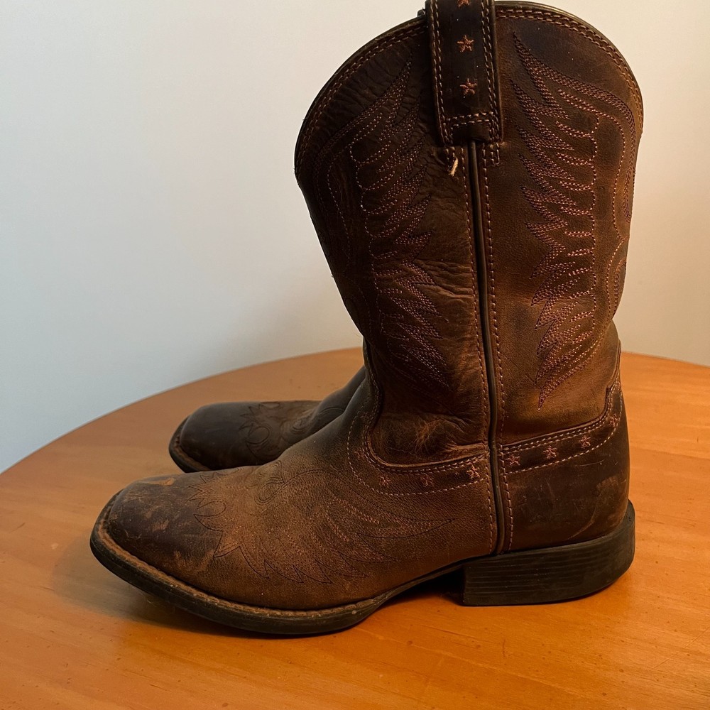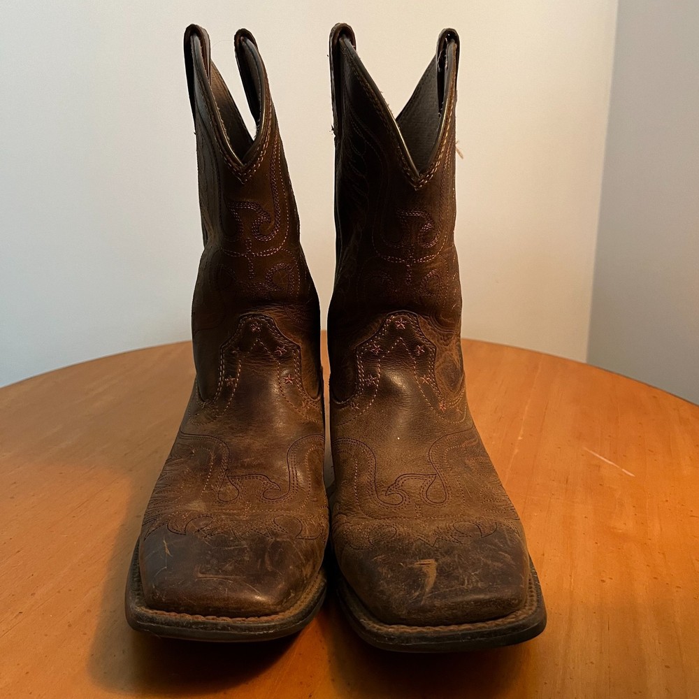 HomeAriat Boys Size 3 Leather Western Cowboy Boots Square Toe Farm Work