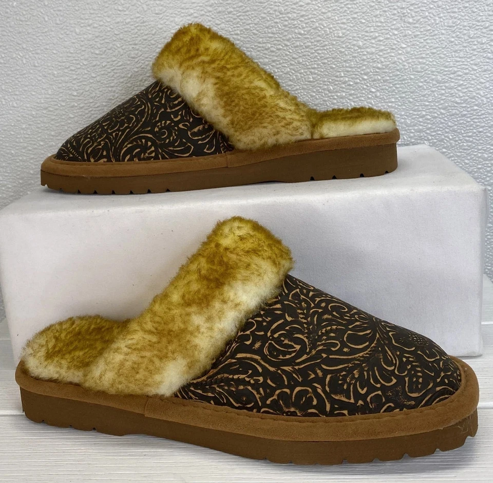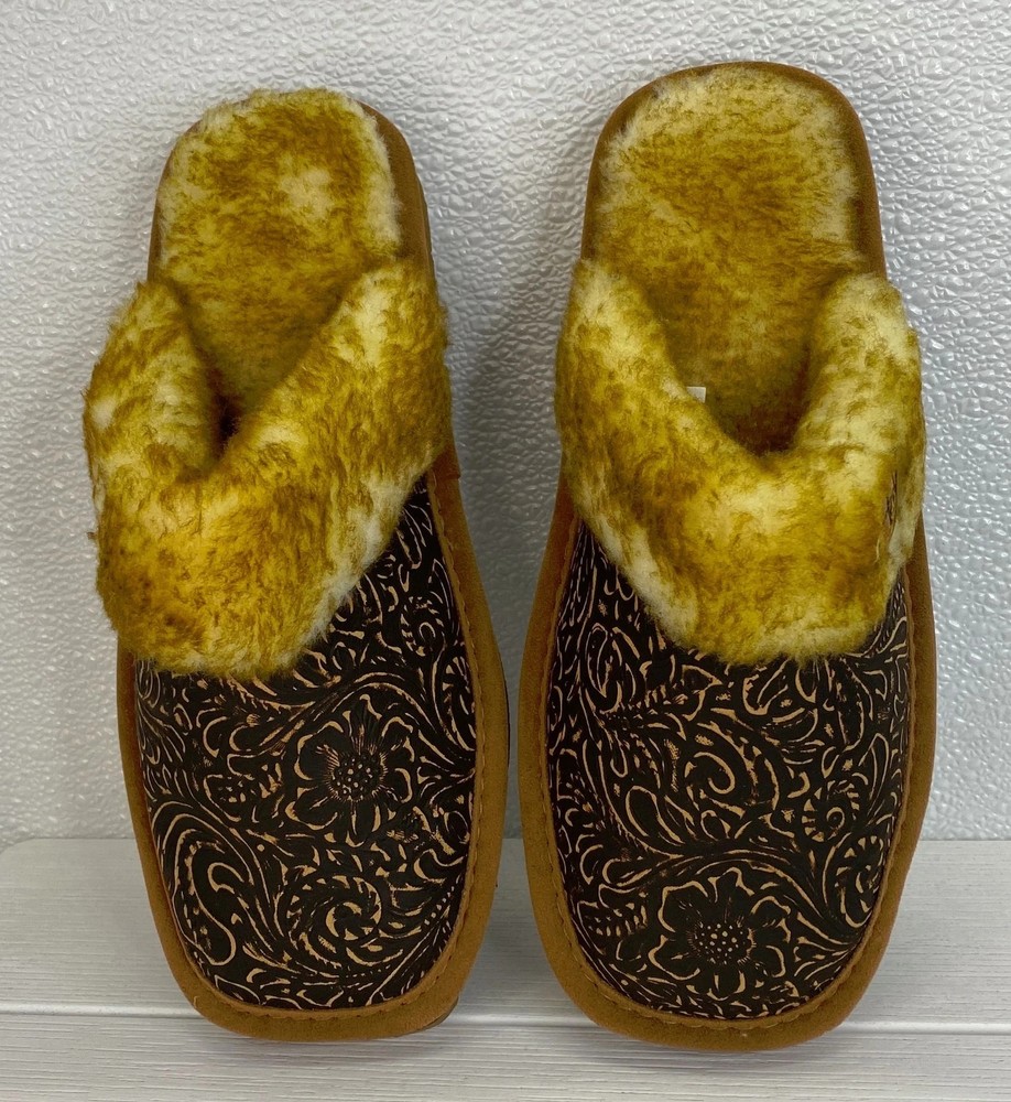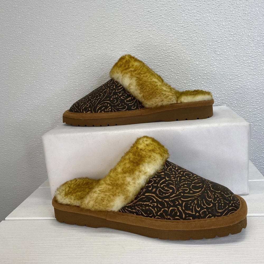 Ariat Jackie Embossed Slippers Square Toe Women's Size 6 Suede Brown Slip On