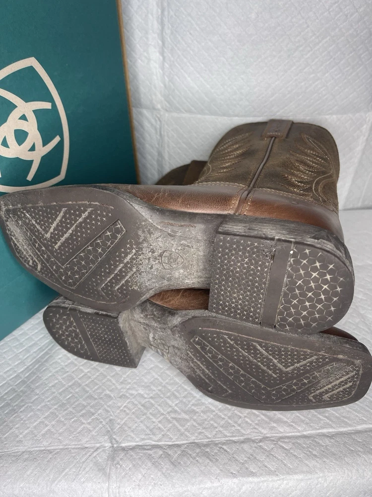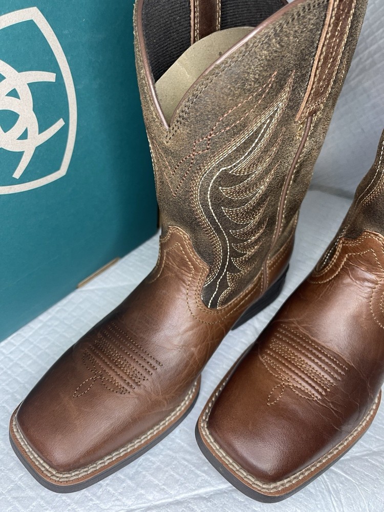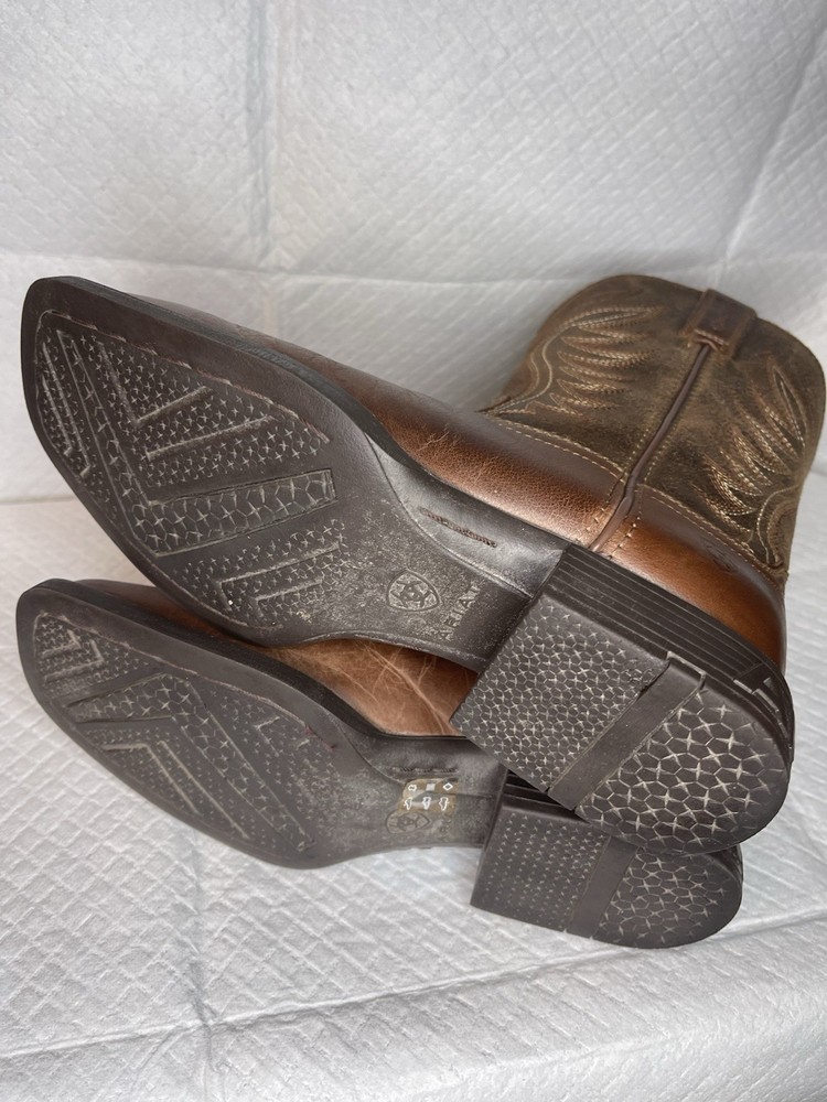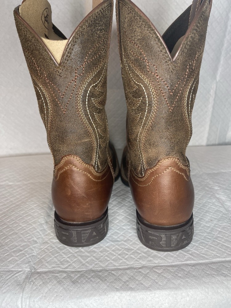 These Ariat Kids Size 2 Brown Leather Boots feature a square toe shape and a pull-on closure for easy wear. The boots have a low heel height and embroidered accents, making them stylish for casual occasions. With a comfortable cushioning level and rubber outsole, these Western-style boots are perfect for all seasons. The Ariat brand is known for quality and durability, making these boots a great choice for your child's wardrobe.