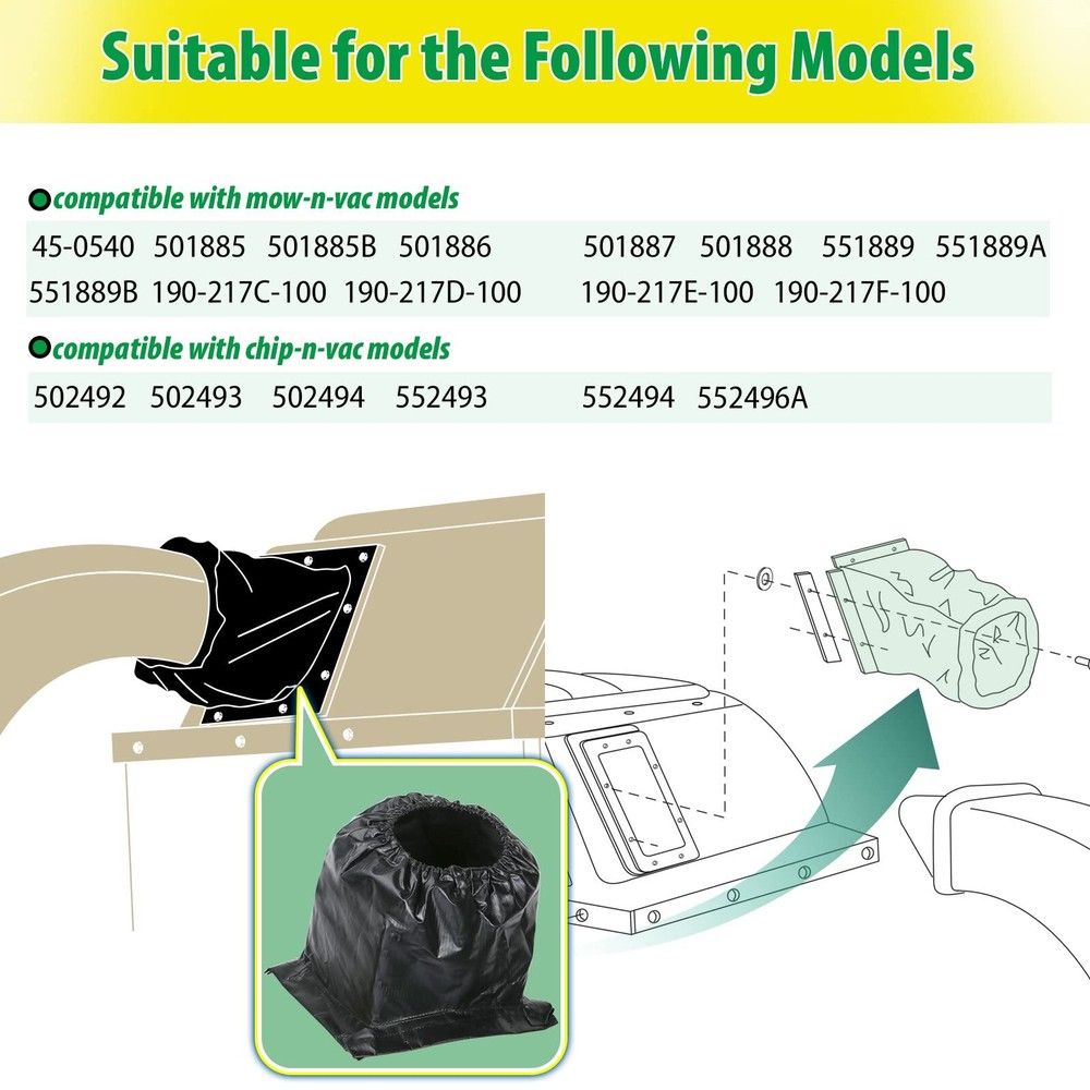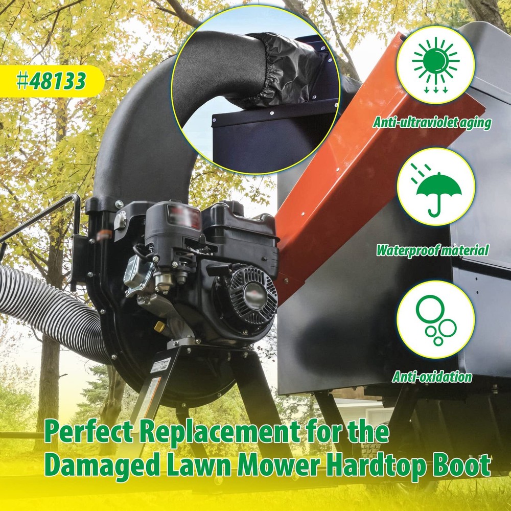 Arinakii Lawn Vac Parts for Agri Fab, Replacement Parts for Agri Fab, 48133 Lawn Mower Hardtop Boot, 1 Pack, Black This mower hard top boot is used to connect the vacuum cleaner connecting pipe and the hard top, and is the perfect replacement for the damaged lawn mower hard top boot The lawn vac part is suitable for the following models - compatible with mow-n-vac models 45-0540,501885,501885B, 501886,501887,501888,551889,551889A, 551889B, 190-217C-100,190-217D-100,190-217E-100,190-217F-100. Compatible with chip-n-vac models 502492,502493,502494,552493, 552494,552496A This replacement part for Agri Fab is easy to install. Fix the hole at the bottom of the hard top boot to the installation hole position on the hard top by rivets, and then cover the top onto the connecting pipe of the vacuum cleaner This mower hard top boot is made of high strength composite material, which has good stability and corrosion resistance, is not easy to tear, and has a long service life We provide you friendly customer service. If you are not satisfied with your purchase, please contact us through Amazon, and we will arrange replacement or refund for you Shipping We offer FREE shipping on all orders! We ship within Three business days of payment, usually sooner. We use a selection of shipping services such as UPS, FedEx, USPS etc. We only ship to the lower 48 states, no APO/FPO addresses or PO Boxes allowed. Local pickups and combined shipping options are not provided at this time. Return You can return a product for up to 30 days from the date you purchased it. Any product you return must be in the same condition you received it and in the original packaging. Please keep the receipt. Payment We accept payment by any of the following methods: PayPal Please pay as soon as possible after winning an auction, as that will allow us to post your item to you sooner! Feedback Customer satisfaction is very important to us. If you have any problem with your order, please contact us and we will do our best to make you satisfied. Contact Us If you have any queries, please contact us via ebay. We usually respond within 24 hours on weekdays. Please visit our eBay store to check out other items for sale! Thank you for shopping at our store.