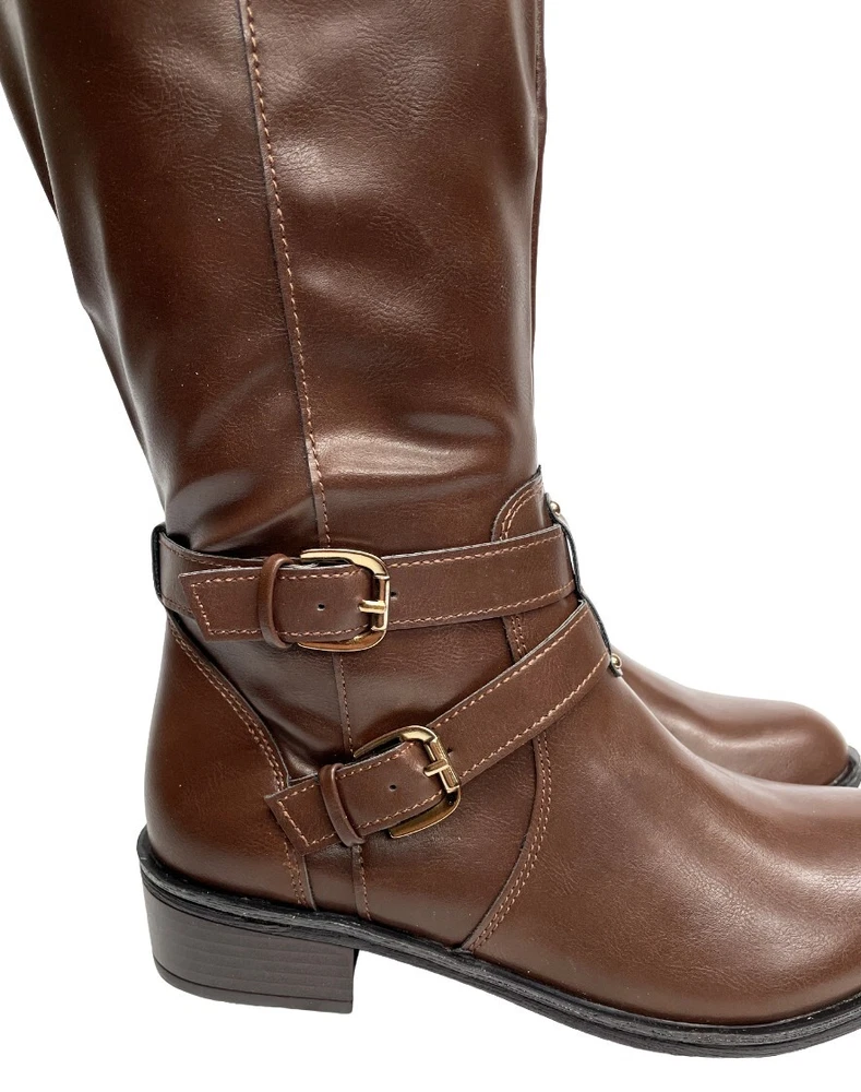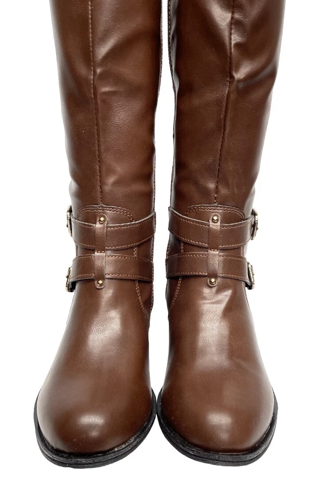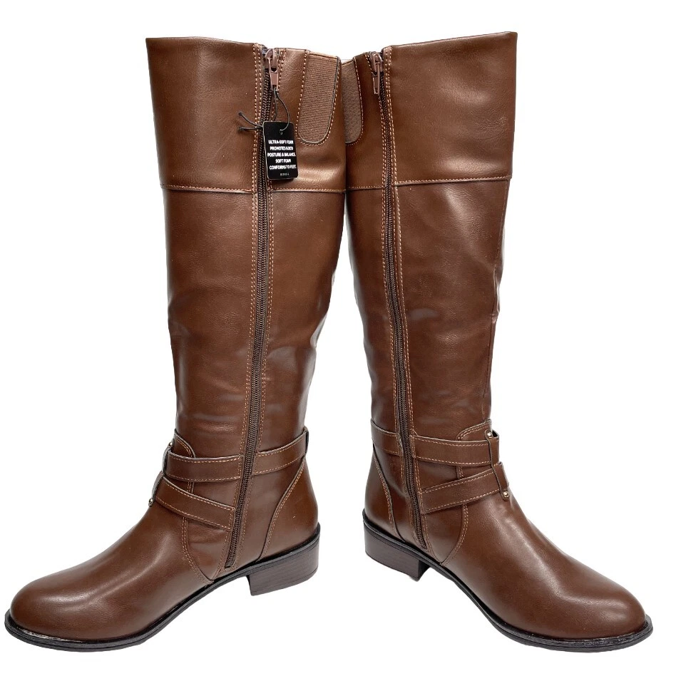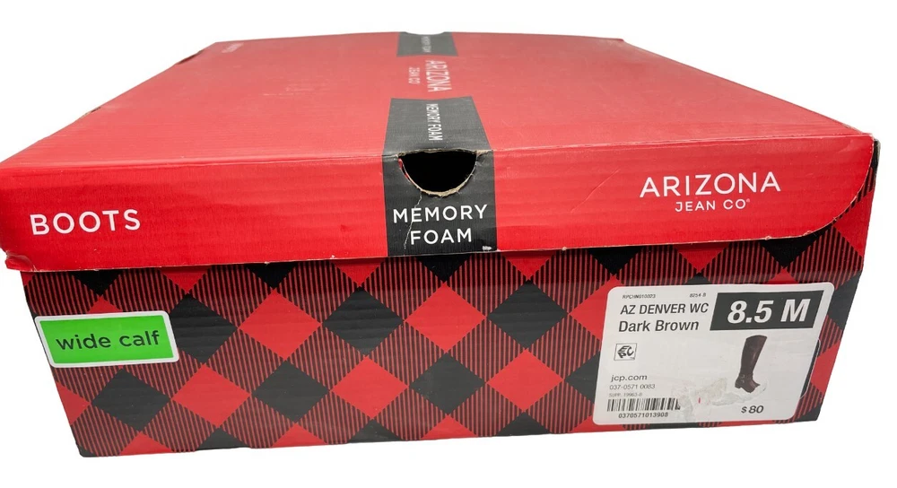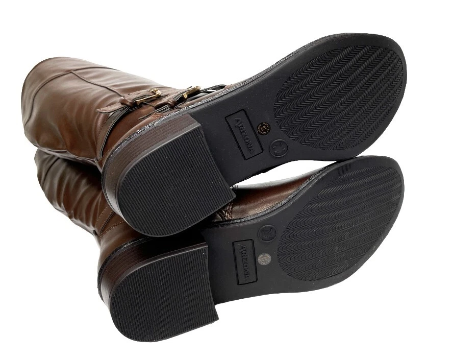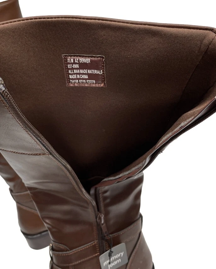 US Shoe Size: 8.5 Accents: Buckle Model: Denver Closure: Zip Pattern: Solid Occasion: Business, Casual, Party/Cocktail, Travel, Workwear Heel Height: Low (1-1.9 in) Type: Boot Calf Width: Wide Brand: Arizona Jean Co Style: Riding Boot Character: Boots Shoe Width: M Color: Brown Theme: American, Equestrian, Modern Upper Material: Faux Leather Toe Shape: Round Toe Department: Women Shoe Shaft Style: Knee High Heel Style: Block Features: Comfort, Lightweight, Memory Foam