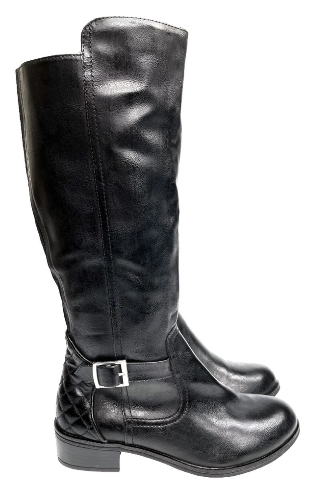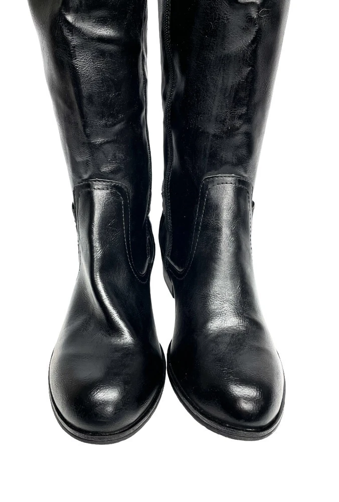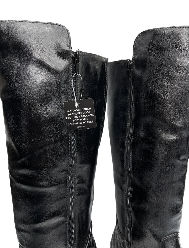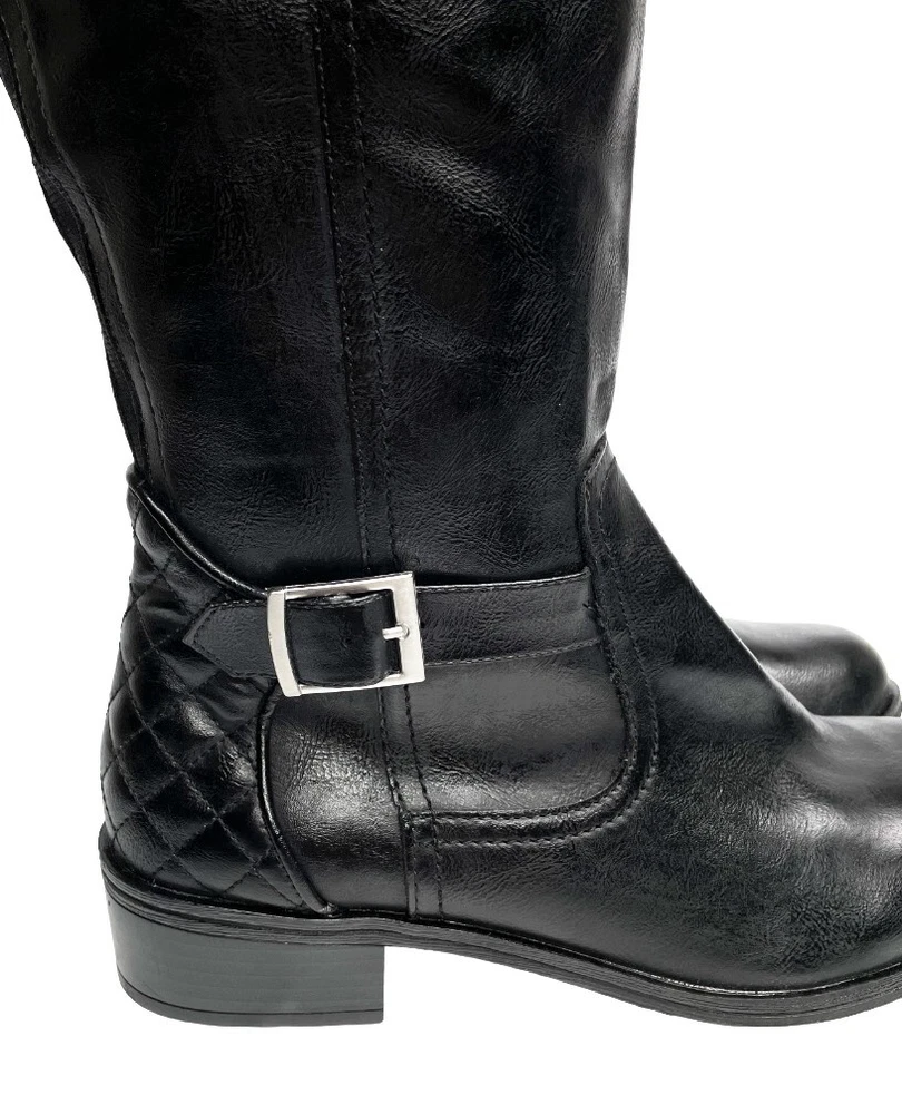 Arizona Dino Faux Leather Black Tall Wide Calf Riding Boots Women's 6 M NEW
