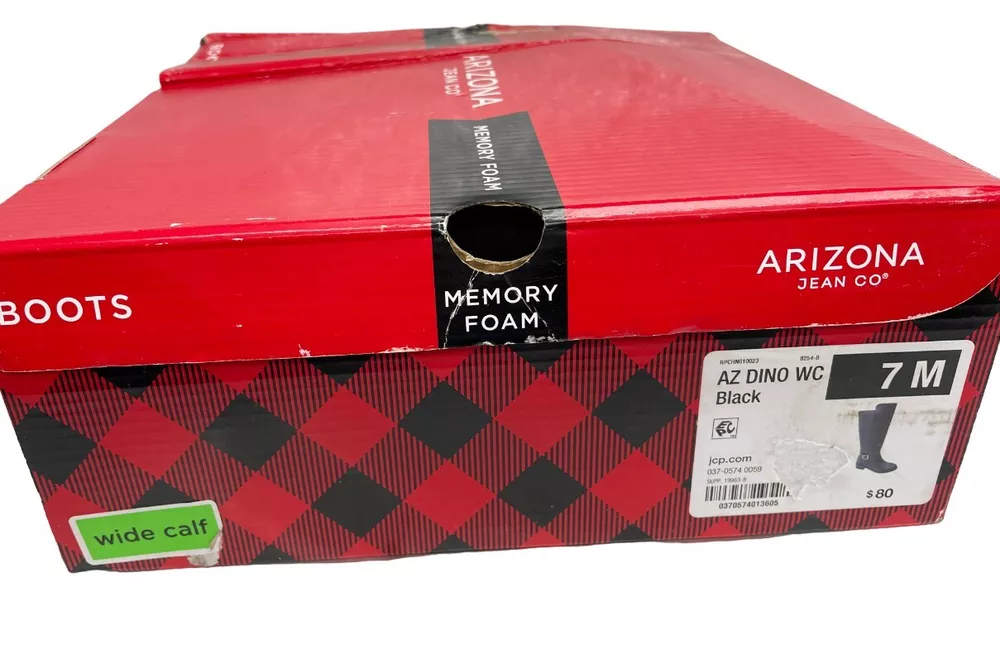 Arizona Dino Faux Leather Black Tall Wide Calf Riding Boots Women's 7 M NEW