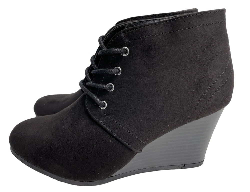 Arizona Lawrence Black Faux Leather Wedge Wedgie Bootie Boots Women's 9.5 M NEW