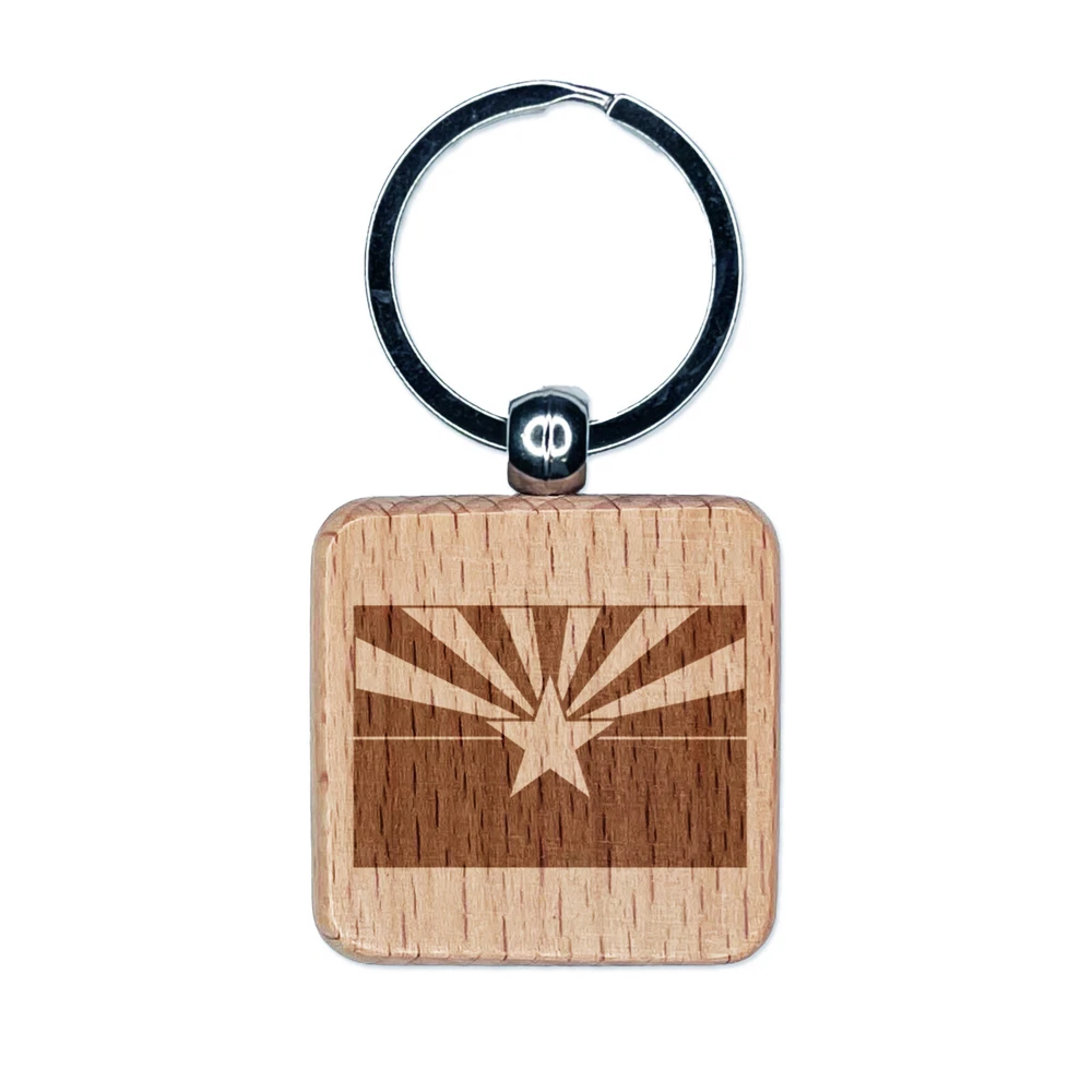 Arizona State Flag Engraved Wood Square Keychain Tag Charm