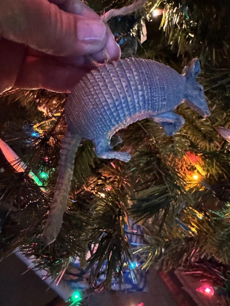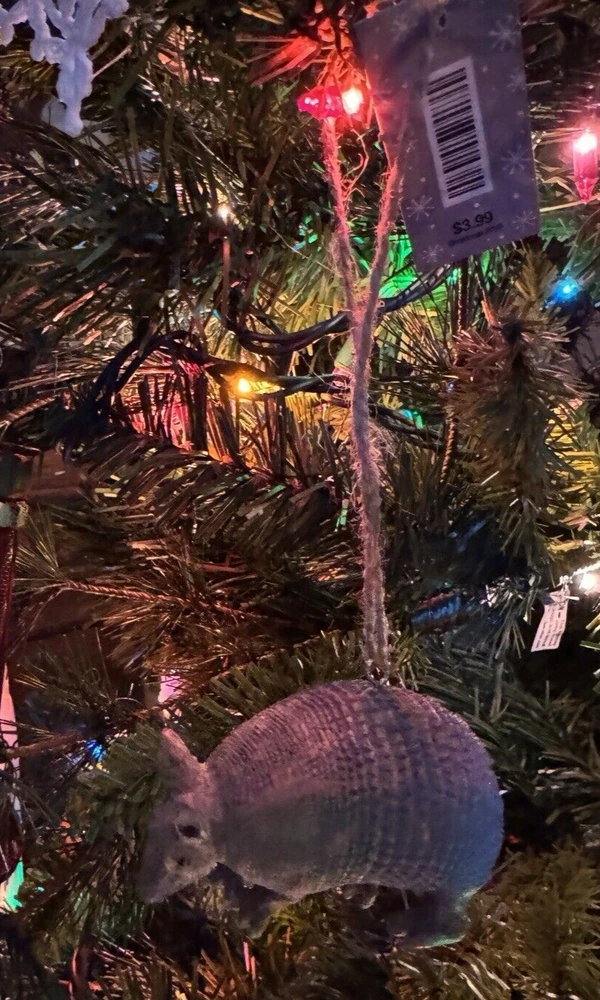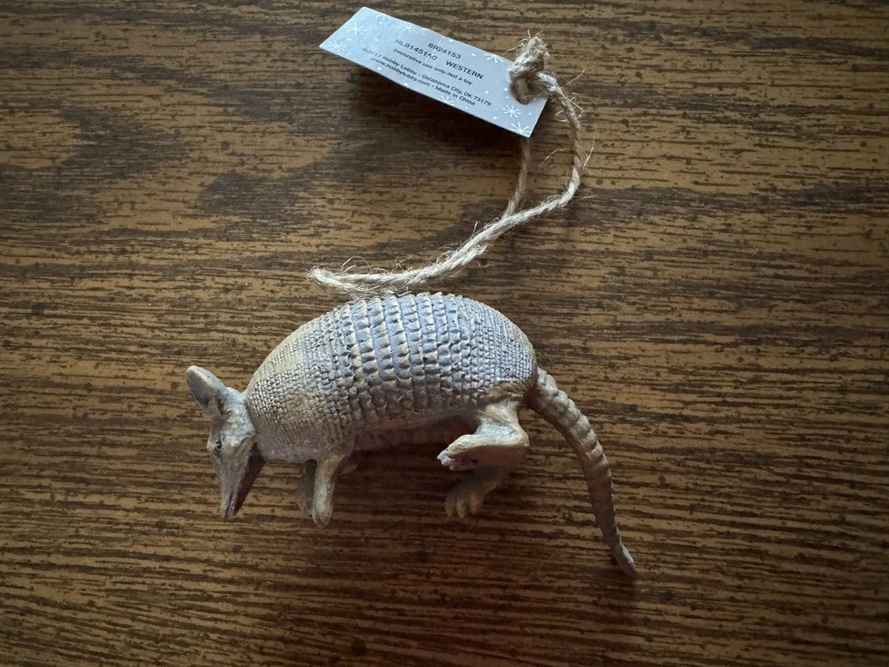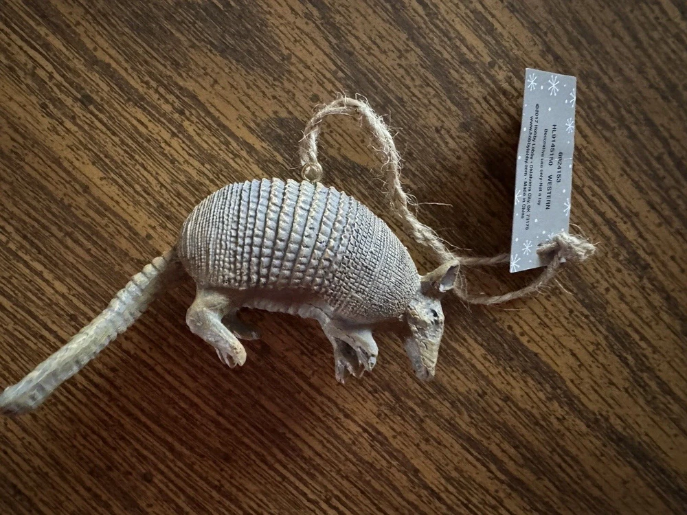 This ornament is unused. it is a realistic looking armadillo. The way the tail hangs down, you cannot just sit him on a shelf. Nonsmoking home. Great for a Texas themed tree. I have 2 for sale. One has the tag on it and one does not. Both in good condition. This is for one of them.