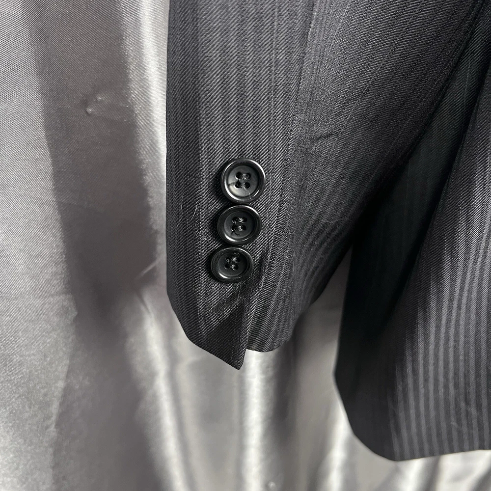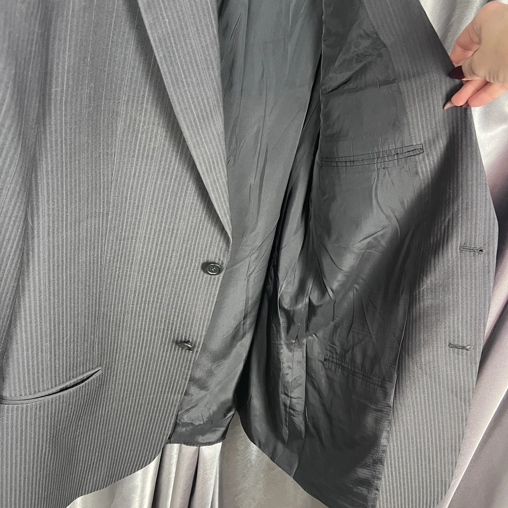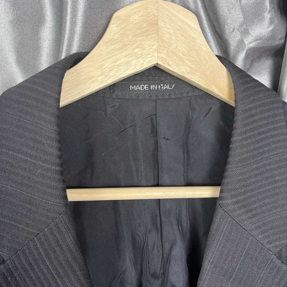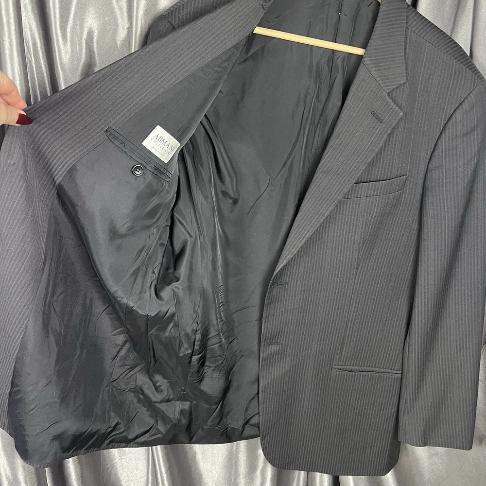 Armani Collezioni Men's Blazer 42R Black Striped Wool Suit Jacket Made in Italy Luxury Designer No blemishes 😍 Condition shown in photos Please make sure to view and zoom in on all photos to determine the condition of the blazer. Blazer has been cleaned and sanitized to meet the platform standards Questions? Want more pics? Send a DM 🙂 📬 Ships same day or within 24/hrs! 🥳 Full refunds will be given for returned items sent in original condition.