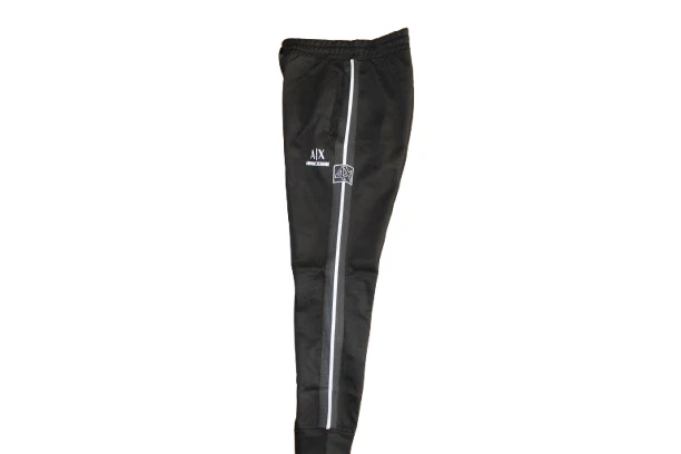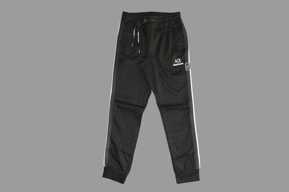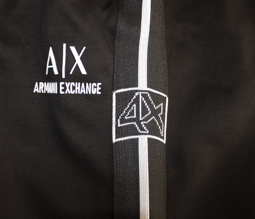 Number of Pieces: 2 Piece Set Includes: Jacket, Pants Theme: Colorful Fit: Regular Material: Cotton Size Type: Regular Accents: Logo Garment Care: Machine Washable Occasion: Activewear Season: Fall, Spring, Winter Brand: A|X Armani Exchange Pattern: Striped Type: Tracksuit Department: Men Sleeve Length: Long Sleeve Color: Black Closure: Zip