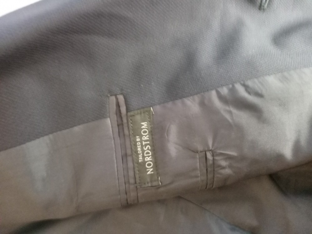 This is a men's Armani suit coat sports blazer in navy blue, tailored by Nordstrom and made in Italy. The blazer features a stylish and sophisticated sports blazer style. With the Armani brand name attached, you can expect high-quality craftsmanship and attention to detail in this tailored piece. Perfect for formal occasions or adding a touch of elegance to a more casual outfit, this blazer is a versatile and timeless addition to any man's wardrobe. There is no label referencing size, but from the measurements it would seem to be a size 40. So, please note the following measurements. To aid in buying clothing online, take a jacket that fits you well, lay it on your bed, smoothing out the wrinkles and taking four (4) measurements. The first would be from shoulder seam to shoulder seam. The second would be from armpit to armpit. The third would be from the center of the back collar seam to the hem and the fourth would be from the shoulder seam to the sleeve cuff. The following measurements are from this jacket: 1.) From shoulder seam to shoulder seam: 18 inches 2.) From armpit to armpit: 20 inches 3.) From center of back collar seam to the hem: 30 inches 4.) From shoulder seam to sleeve cuff: 25 inches