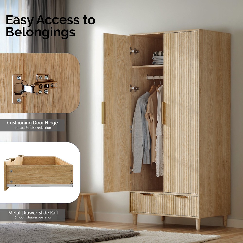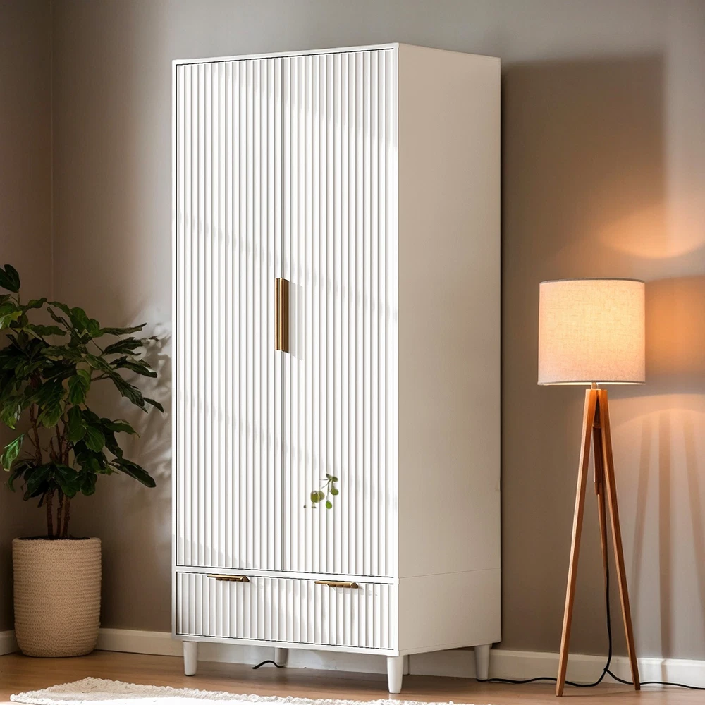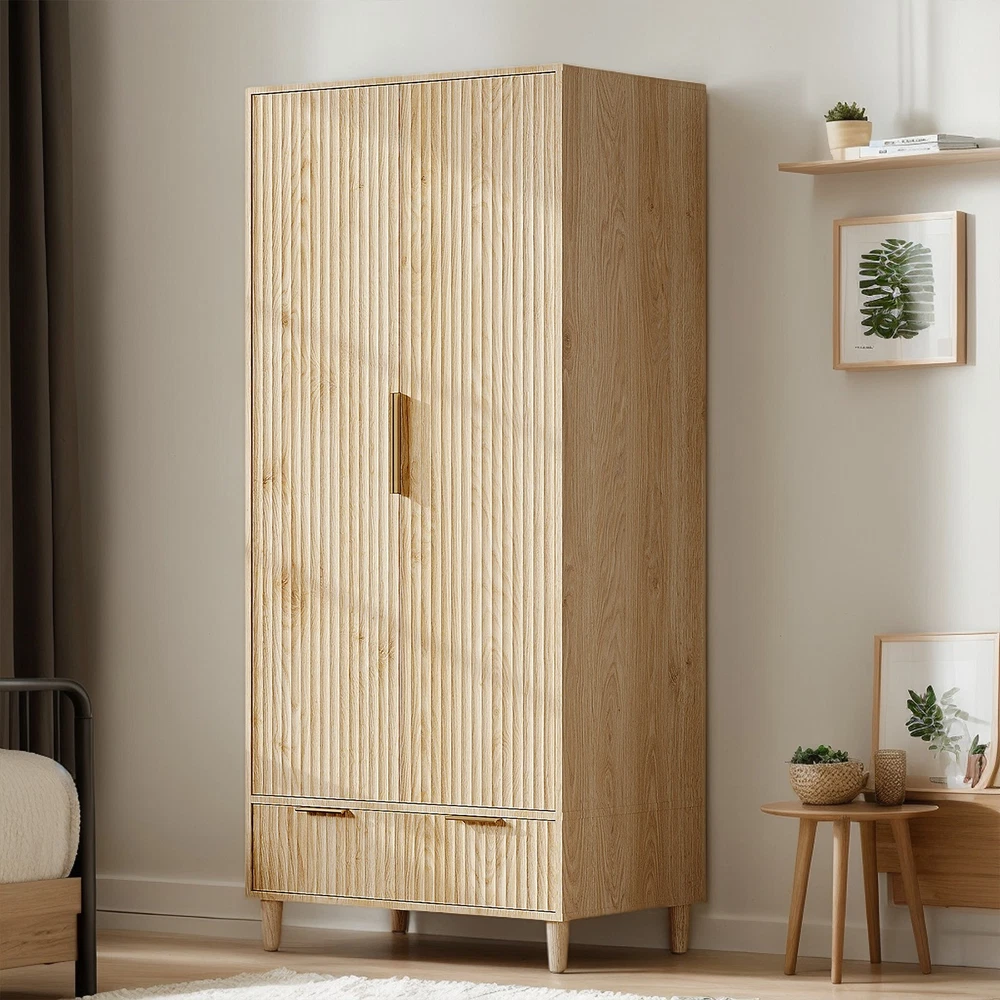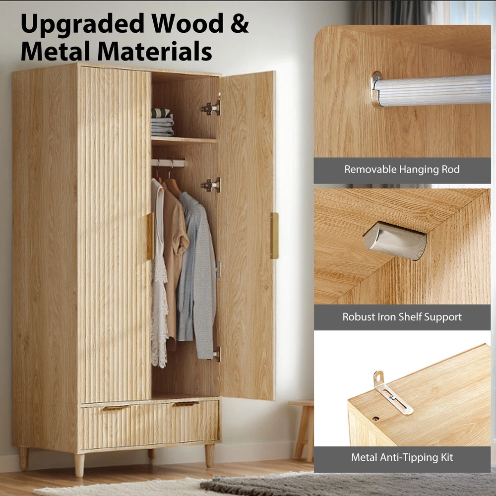 Wooden Wardrobe with Hanging Rail for Closet Storage Cabinet