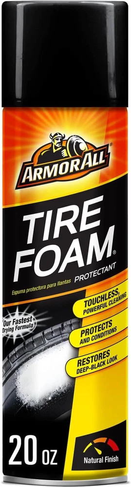 Armor All Tire Foam Automotive Protectant Foam, Wheel Cleaner, Aerosol Spray, 20 Ounce (Pack Of 6) Armor All Tire Foam Protectant not only cleans and conditions your tires, but it also help prevent ozone degradation, which can cause drying, cracking and fading. This intense foaming cleaner activates on contact, floating dirt away without scrubbing, while conditioners nourish and restore tires' natural beauty and deep, black appearance. About this item 20 oz canister of Armor All Tire Foam Automotive Cleaner and Protectant for clean and nourished tires This tire foam cleaner activates on contact to remove dirt without scrubbing for an easy clean Armor All protectant for tires contains conditioners to nourish and restore tires' deep, black look Simply spray on wet or dry tires and let dry—the perfect addition to tire care routine Blocking agents in this car tire cleaner protect your tires from harmful elements that can cause cracking and fading over time. Fast and easy to use, simply apply this tire foam spray to wet or dry tires and let dry. Armor All tire protectant is the perfect addition to your car protectant products, whether you're detailing your motorcycle, classic car or daily ride. One easy step, just spray and walk away Intense foam activates on contact floating dirt away without scrubbing Conditioners nourish and restore your tire's deep black look Blocking agents protect from harmful elements that can cause cracking and fading Ingredients Contains: Silicones.