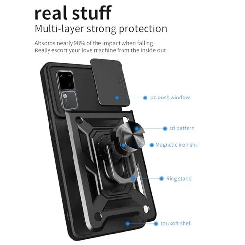 Return Policy Fast Delivery Trusted seller Armor Case for Vivo V30 /V30 Pro with Sliding Camera Cover, Military Grade Heavy Duty Shockproof Protective Phone Case with Kickstand for Vivo V30 /V30 Pro SJ Black Product Description 【Model】Phone case compatible with Vivo V30 /Vivo V30 Pro. 【Lens Slide Cover】The innovative lens slide cover feature of this product allows for seamless cover opening and closing. With a smooth slide motion, the lens cover easily reveals the camera lens, ensuring quick access and enhanced user convenience. 【Rotating Stand】The built-in rotating stand enables versatile positioning options, making it ideal for capturing videos or enjoying multimedia content. It provides flexible viewing angles, allowing users to adjust the device to their preferred orientation for an enhanced multimedia experience. 【Sturdy and Durable】This product has undergone rigorous drop tests to ensure durability and withstands accidental drops and impacts. Its robust construction and reliable build quality make it a suitable choice for long-term use. 【Car Mount】This product features a built-in metal plate that makes it compatible with car mounts. The integrated metal plate ensures a secure grip when attached to magnetic car mounts, providing a stable and hands-free experience while driving. Shipping Returns Payment Shipping Shipping is FREE to all addresses other than APO/PO boxes in the lower 48 states. All our stock ships from US-based warehouses. Shipped via USPS or UPS (depending on location and package weight) Unless stated otherwise, all orders will ship within 24-72 hours of your payment being processed. Check our feedback to see the great reviews of FAST shipping we offer. Returns Seller does not accept returns Payment We currently accept payment via eBay managed payments only. Once payment is cleared, we will dispatch your shipment within 1-3 business days. Please refer to the "Shipping" tab for more information regarding shipping speed to your destination.