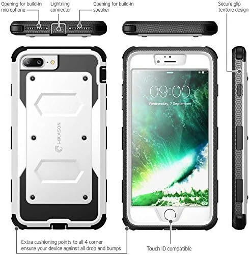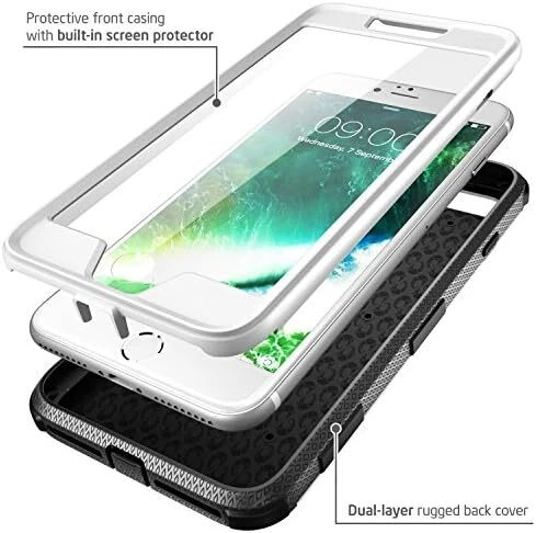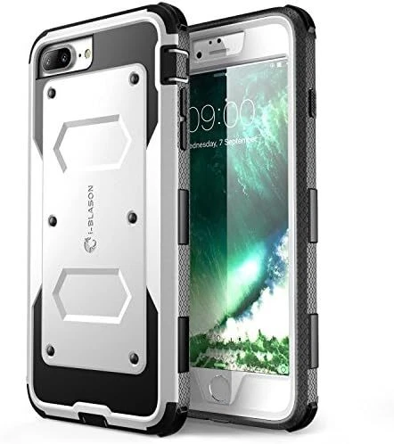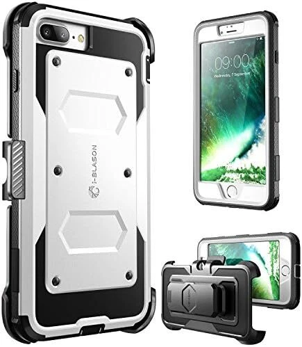 Armorbox Series Case Designed for iPhone 7 Plus/iPhone 8 Plus, Built In Screen Protector Full body Heavy Duty Protection Shock Reduction / Bumper Case (White) Apple iPhone 7 Plus Case/Compatible with Apple iPhone 8 Plus,Rugged, Dual Layer Protective Case with Polycarbonate Hard Shell Exterior and Flexible TPU inner core protecting againsts sudden drops and falls,Protective front casing with built in bubble free screen protector enhances touch sensitivity,Hard back case clips into a side mount belt clip swivel holster for carrying convenience during work, travel or play,Precise cut and design allow easy access to all ports, sensors, speakers, cameras and all Apple iPhone 7 Plus features