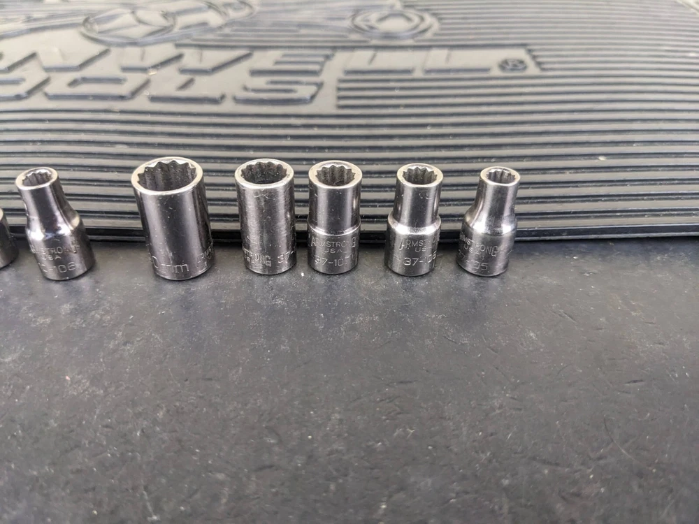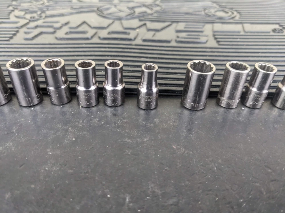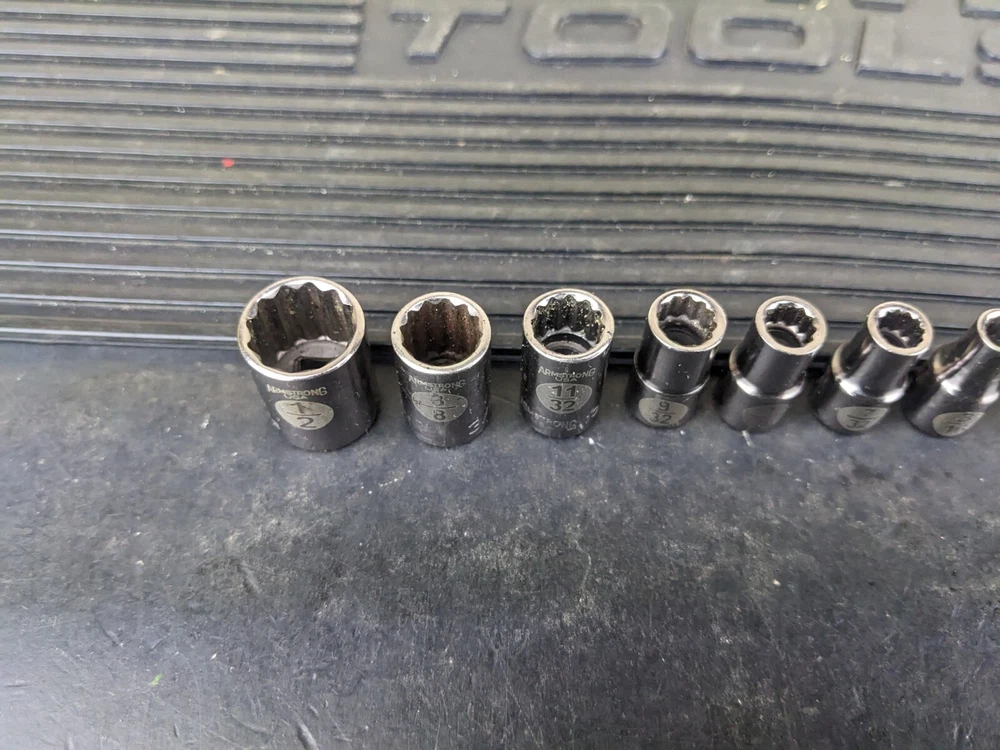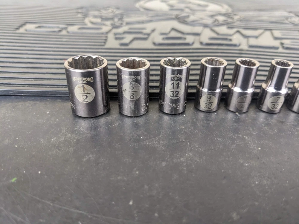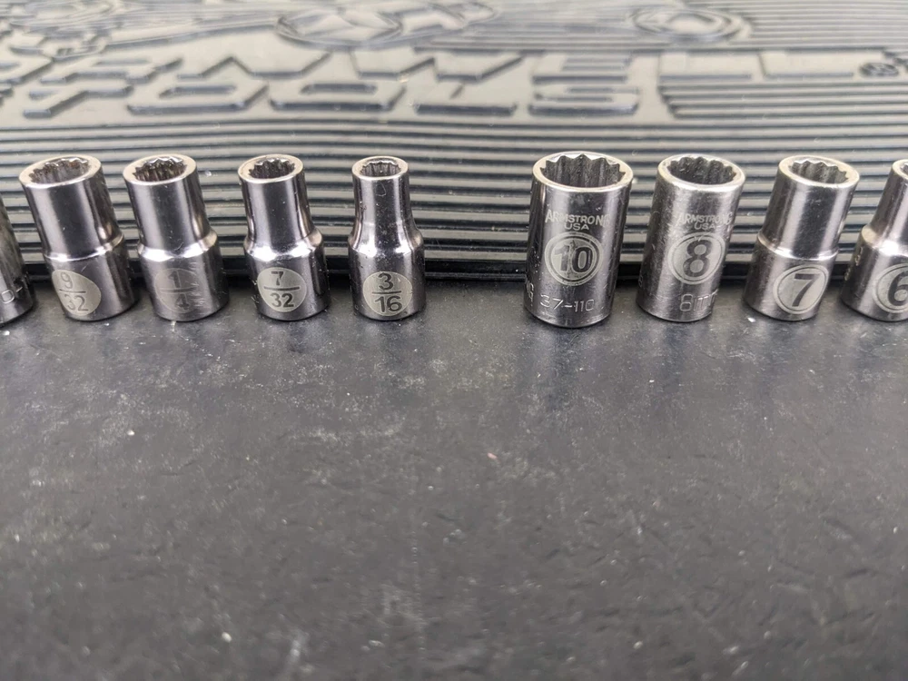 Surface Finish:ChromeManufacturer Part Number:10018Socket Type:StandardDrive Type:6 PointSystem of Measurement:SAESet or Single Item:SetDrive Size:1/4in.Brand:Armstrongmpn:10018Tools Included:Sockets