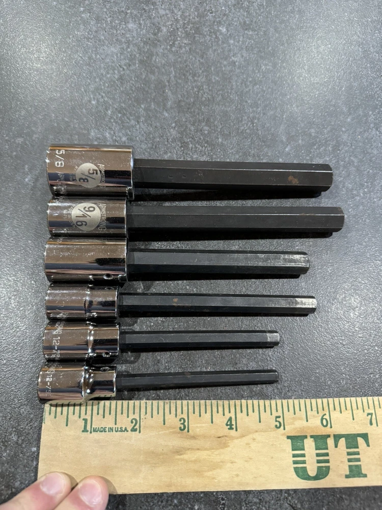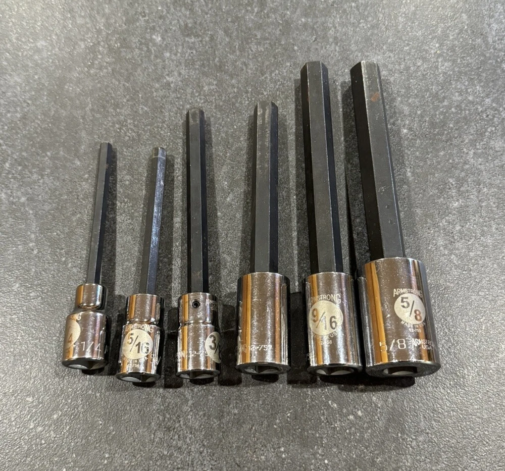 Armstrong 1/2” Drive Hex / Allen Extra Long Socket Set SAE 1/4” - 5/8” No 7/16”