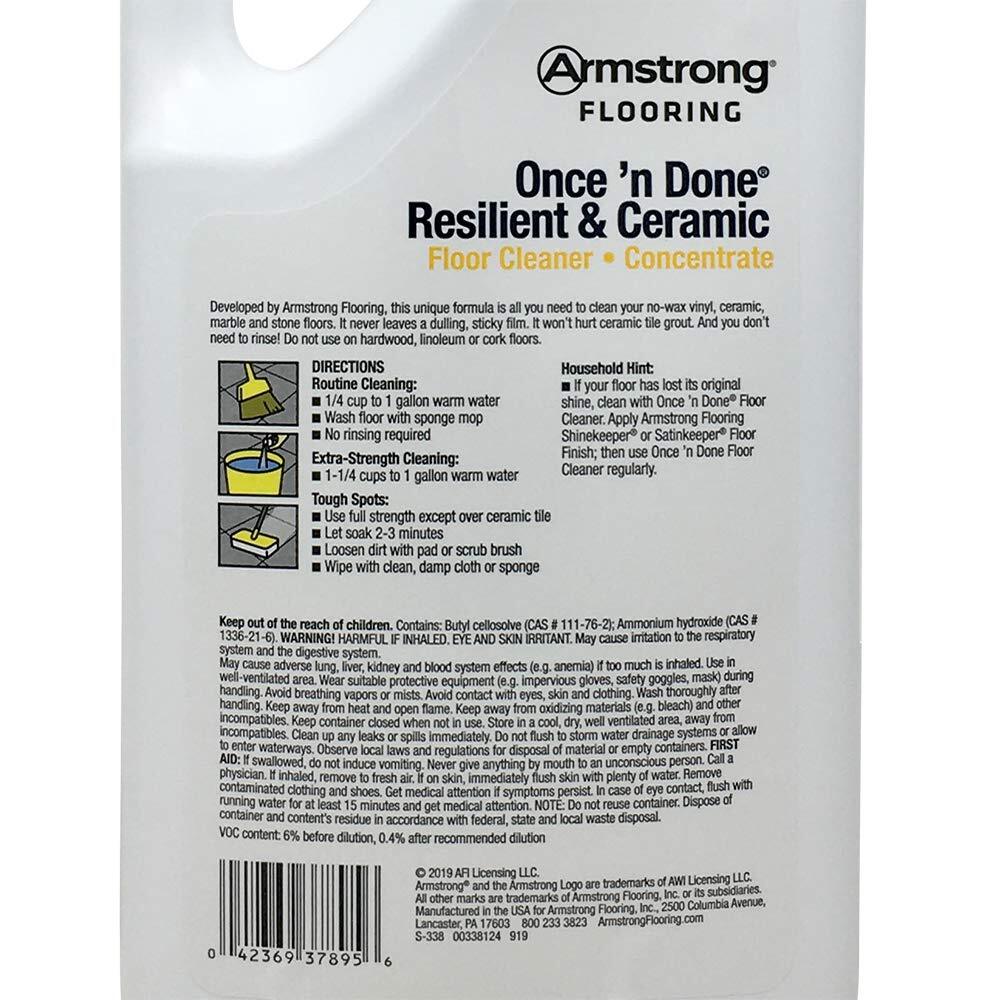 Armstrong Once'n Done Floor Cleaner 32oz - No-Rinse, No-Wax NEW PACKAGE Concentrate Formula, Makes 16 Gallons Cleans No-Wax Vinyl, Ceramic, Marble and Stone Floors No-Rinse, No Residue, Leaves no Dulling Film For Routine Cleaning, Keeps Floors Looking New Shipping We offer FREE shipping on all orders! We ship within Three business days of payment, usually sooner. We use a selection of shipping services such as UPS, FedEx, USPS etc. We only ship to the lower 48 states, no APO/FPO addresses or PO Boxes allowed. Local pickups and combined shipping options are not provided at this time. Return You can return a product for up to 30 days from the date you purchased it. Any product you return must be in the same condition you received it and in the original packaging. Please keep the receipt. Payment We accept payment by any of the following methods: PayPal Please pay as soon as possible after winning an auction, as that will allow us to post your item to you sooner! Feedback Customer satisfaction is very important to us. If you have any problem with your order, please contact us and we will do our best to make you satisfied. Contact Us If you have any queries, please contact us via ebay. We usually respond within 24 hours on weekdays. Please visit our eBay store to check out other items for sale! Thank you for shopping at our store.