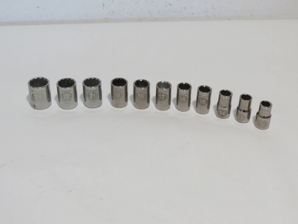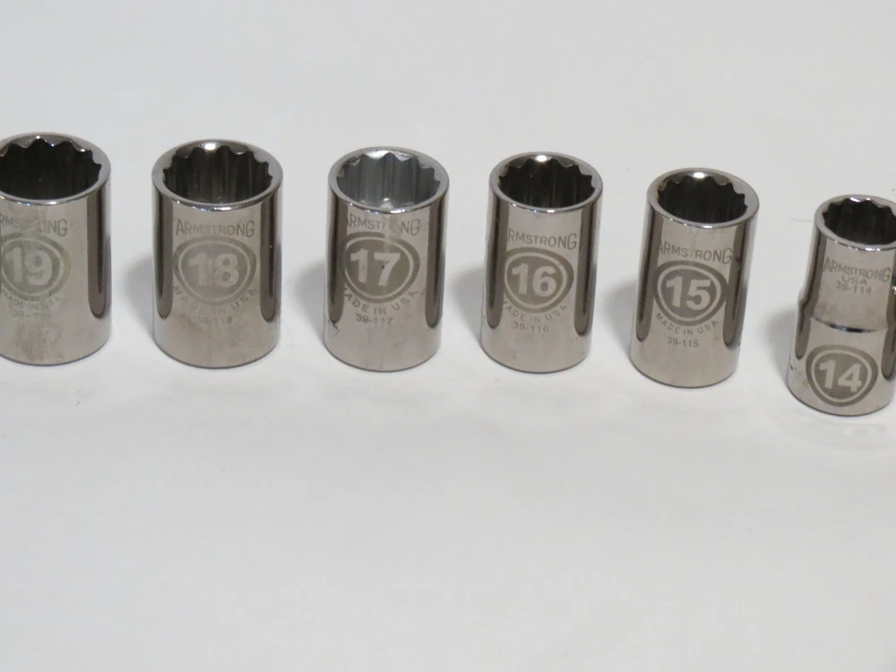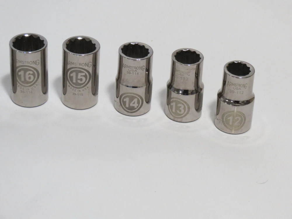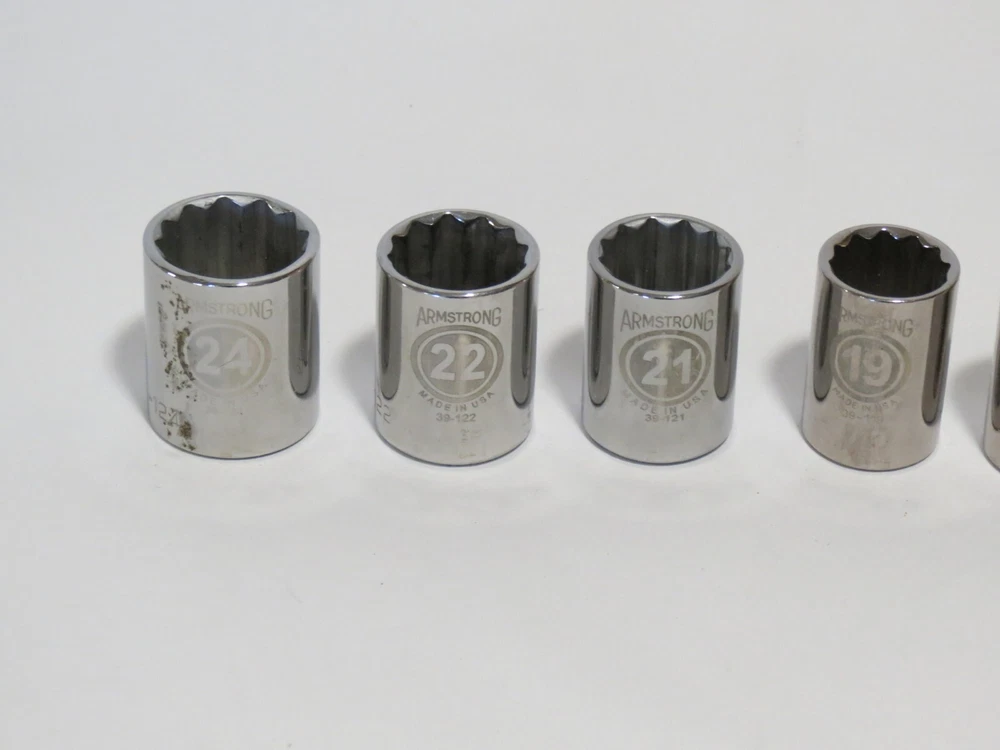 Armstrong Tools USA Metric 1/2 DR Socket Set 12 PT. 12-19MM and 21, 22, 24 Nice. Nice condition. See pics. Actual set you will receive.