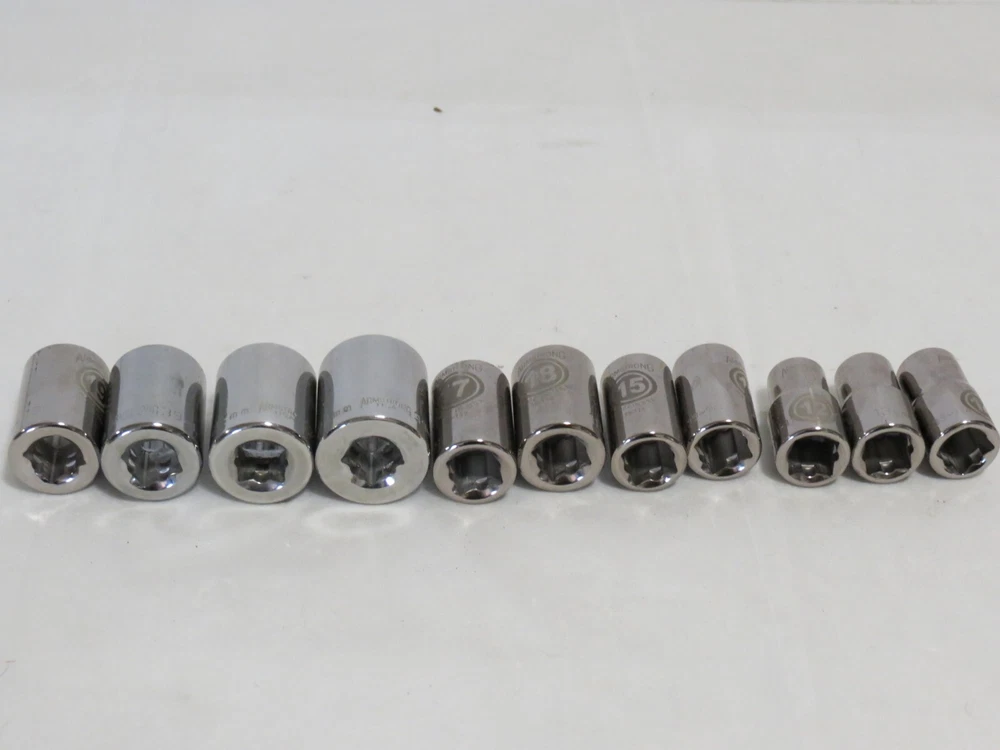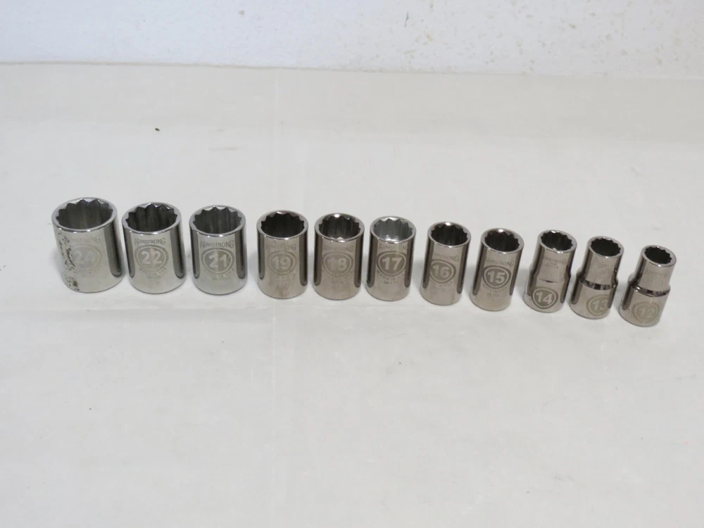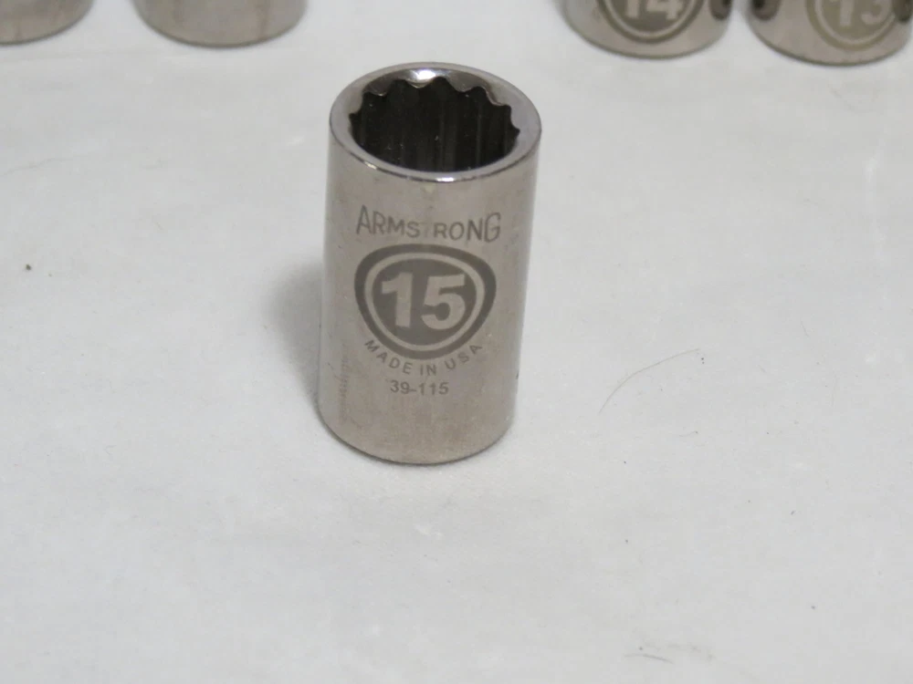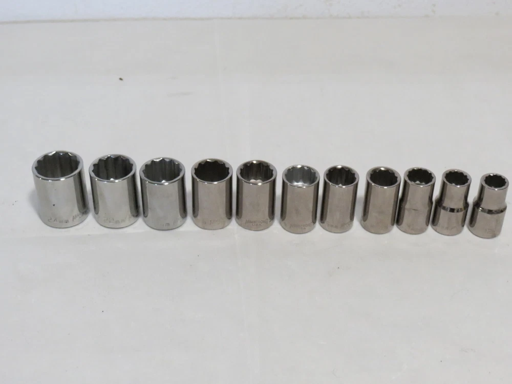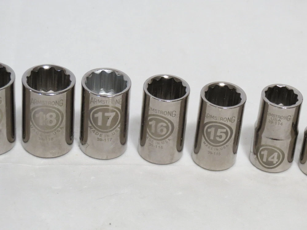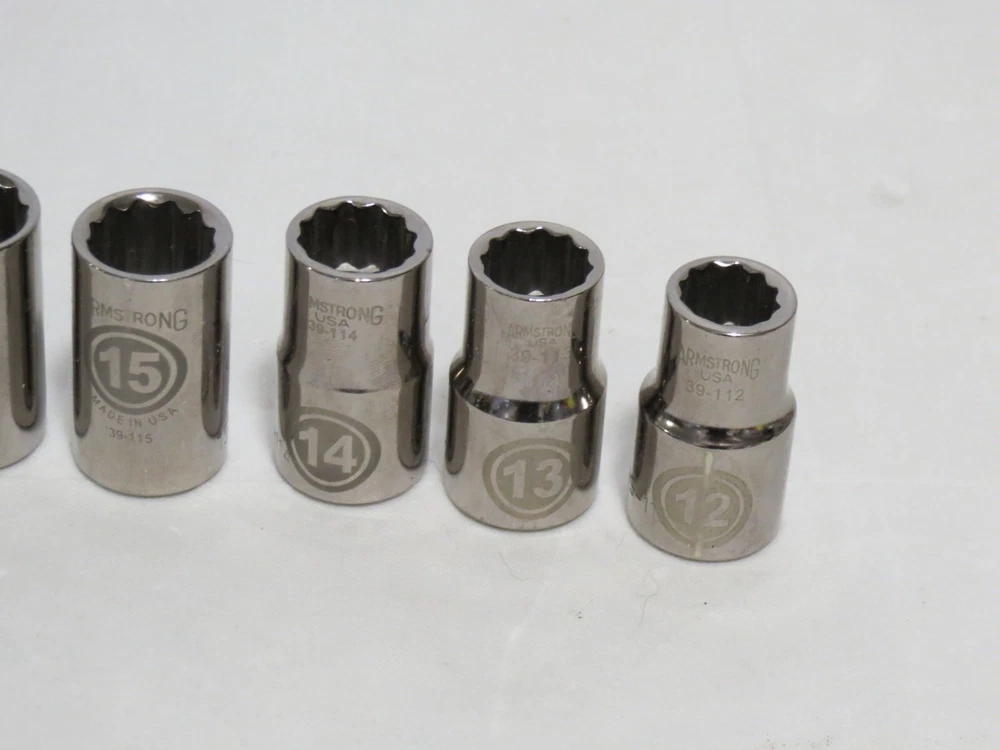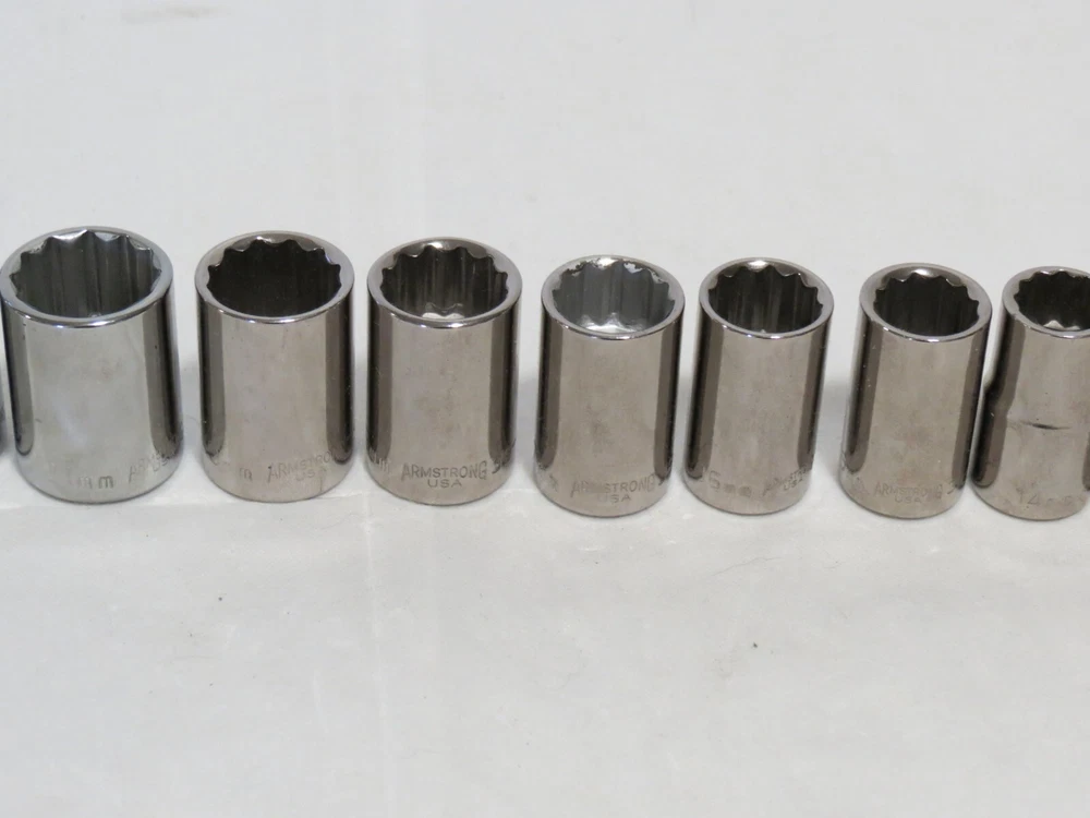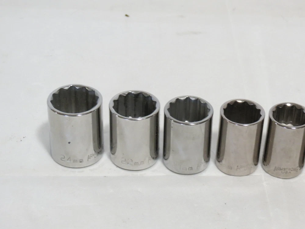 Armstrong Tools USA Metric 1/2 DR Socket Set 12 PT. 12-19MM and 21, 22, 24. Nice pre-owned condition. See pics. Actual set you will receive.
