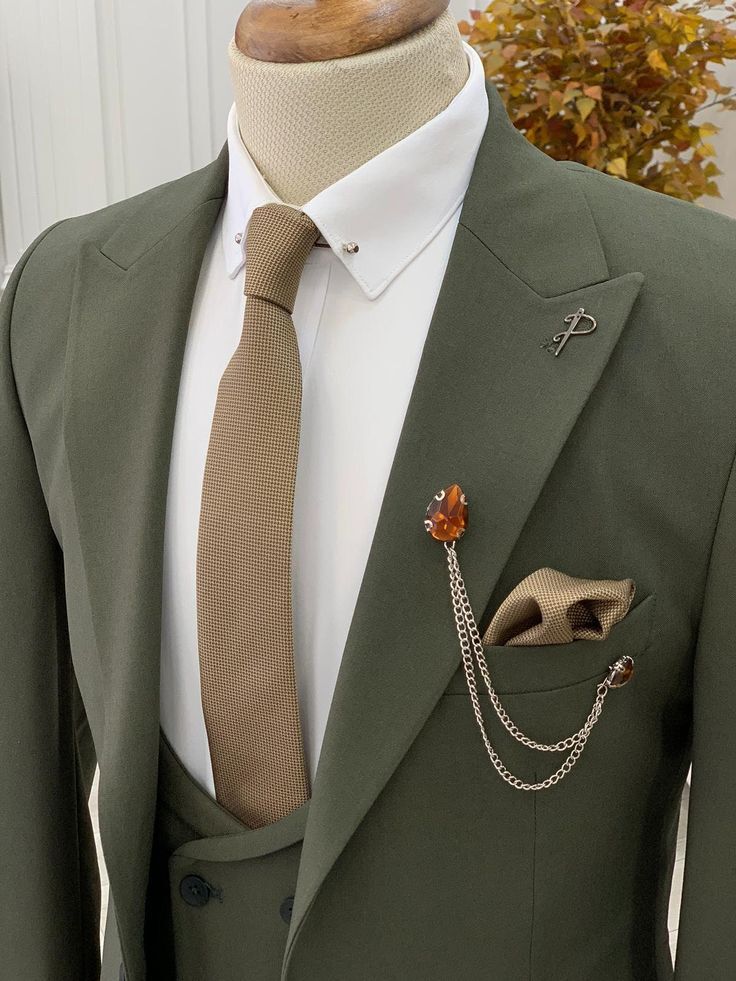 Army Green Peak Lapel Tuxedo Suit for Men Wedding Groom Prom Party Business Formal