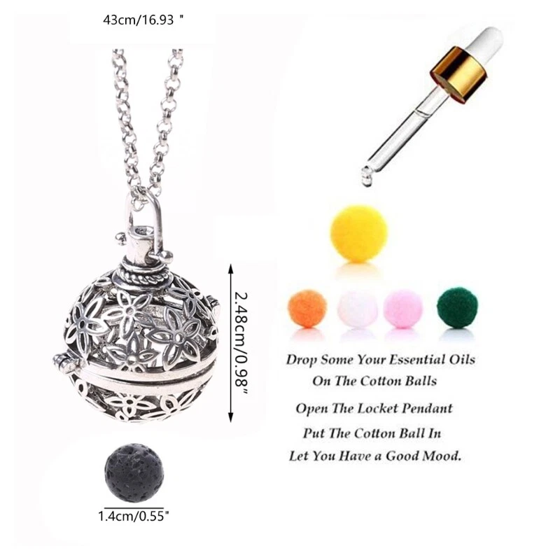 Antique Silver Aromatherapy Essential Oil for Diffuser Locket Bottle Pendant Necklace with Lava Stone Fashion Jewelry Feature: A classical and stylish aromatherapy essential oil diffuser necklace Come with multicolor cotton balls,and lava stones. It is a great way to use the essential oils of your preference. Drop your essential oils on the cotton balls, refill pads and colorful lava stone, wait a few minutes for the oil to be absorbed, this small aromatherapy necklace can hold the aroma of oil for a whole day A beautiful set of classical aromatherapy Pendant gifts, it’s a great choice as a gift for your lovely family and good on Birthdays, Christmas, Holidays, Graduations, or any gift giving occasion. Item Type : Necklace Gender:Unisex Material:Alloy (Nickel Hypoallergenic property) Color:Silver, Type:A# B# C# D# Optional Size: Pendant Width:4cm/1.6",Thickness2cm/0.8" Chain Length 45cm/18" More detailed,please see photo. Quantity Pc. Note: Size for manual measurement, there may be a 0 to 2 for cm error, belongs to the normal phenomenon. And due to the difference between different monitors, the picture may not reflect the actual color of the item. Thank you! Package includes: Pc x Locket Pendant Necklace. Pc x 16mm Lava Stone 5 Pcs x Cotton Balls(Color at random)