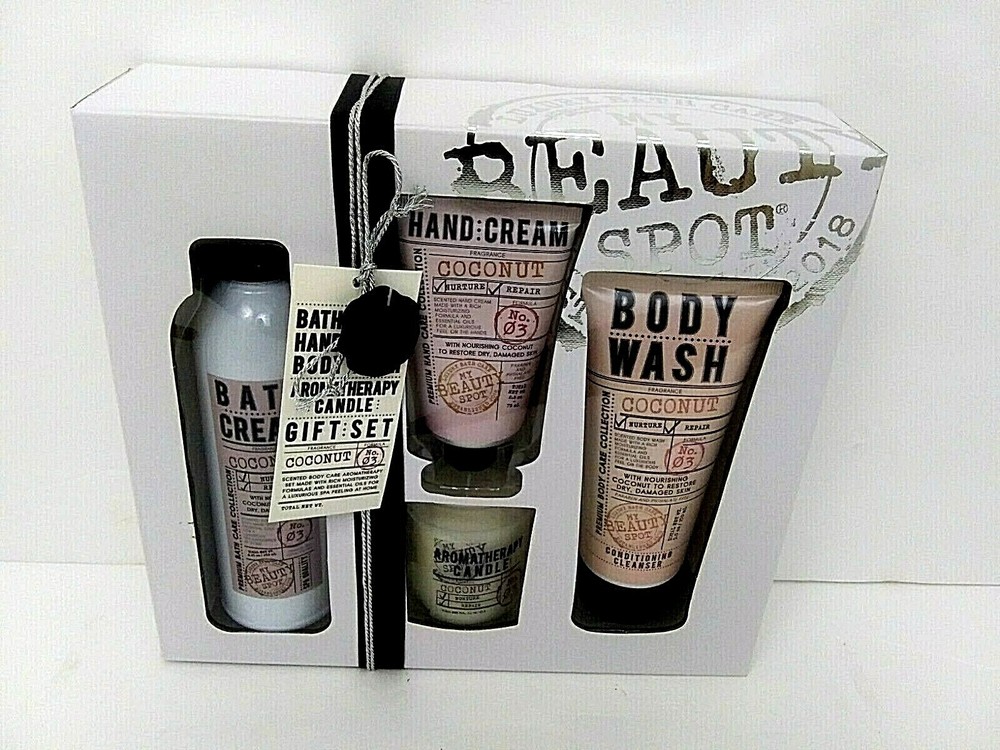 Aromatherapy Gift Set Bath And Hand Cream Body Wash Candle Coconut No.3 IN STOCK Please Read The Return Policy,Descriptions And 1 Day Handling Times Carefully Before Purchasing *** ATTENTION !!! My Best Offer Is Set At $3.00 To $10.00 Less Than The Fixed Price *** *** All Photo's Are Of The ACTUAL Item(S) That You Will Receive Guaranteed *** *** Ships From The U.S *** (1 Or Same Day Handling Time ) **PLEASE READ!! *** Saturday-Cut Off Handling Time Is 7 Pm Eastern Standard Time(Will Ship On Monday) Sunday - Cut Off Handling Time Is 7 PM Eastern Standard Time(Will Ship Next Day On Monday) Mon.-Fri. - Cut Off Handling Time Is 1 PM Eastern Standard Time(If Ordered After 1 PM Will Ship Next Day) *** If Order On A Major Holiday We Will Ship The Day When The Post Office Reopens *** *** Ships USPS Priority Mail Medium Flat Rate Box (Wide Box) *** (U.S) *** Ships EBAY International Standard Delivery (Reg.Box) *** (International) Item Descriptions : Scented Body Care Aromatherapy Set Made With Rich Moisturizing Formula And Essential Oils For Luxurious Spa Quality Pampering At Home Total Net.Wt.18.15 Oz. Established In 2018 Coconut Fragrance **Be Sure To Inspect Your Item Immediately Upon Arrival Please Leave Positive Feedback If You Are Happy And Satisfied With your Purchase If By Any Chance That The Item Is Not As Described Please Contact Us So That We Can Fix It...Please Report The ERROR To Us. Condition- ** Brand NEW *Location : From A Smoke Free And Pet Free Home ! *Payment : ALL TRANSACTIONS MUST BE HANDLED THROUGH EBAY ONLY!! *Shipping : We Ship All Items 1 Or Same Business Day Of Payments Clearing (Including Weekends And Holidays... If Opened ) We Ship Worldwide * Return Policy:Please Read Carefully !! *** 30 Day Return *** ***** Contact Us ****** Please Feel Free to Contact us with Any Questions about the Item Thank You For Stopping By and Have a Great Day!!